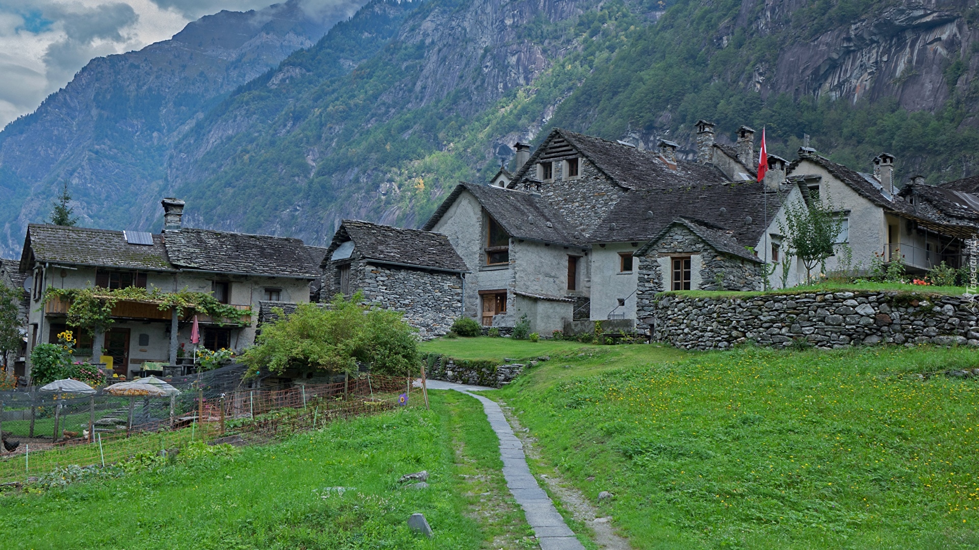 Edytor tapety: Kamienne domy w szwajcarskiej Dolinie Bavona