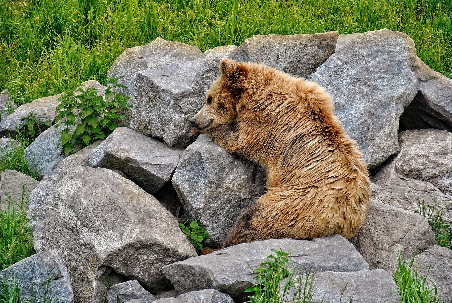 Edytor tapety: Niedźwiedź leżący na kamieniach