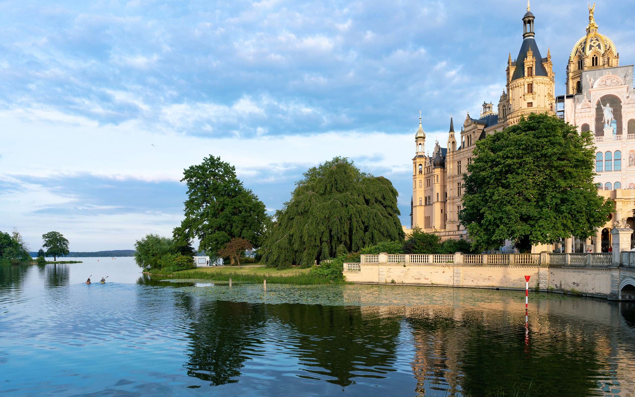 Edytor tapety: Zamek Schwerin nad jeziorem Schweriner See