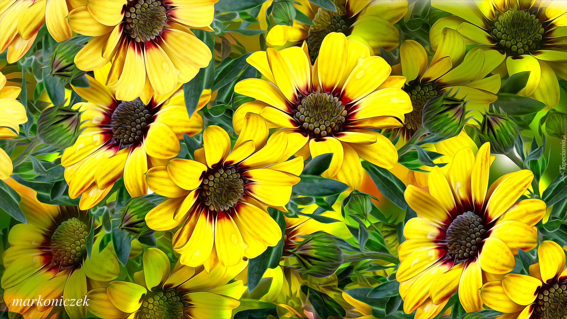 Edytor tapety: Zbliżenie żółtych kwiatów w grafice