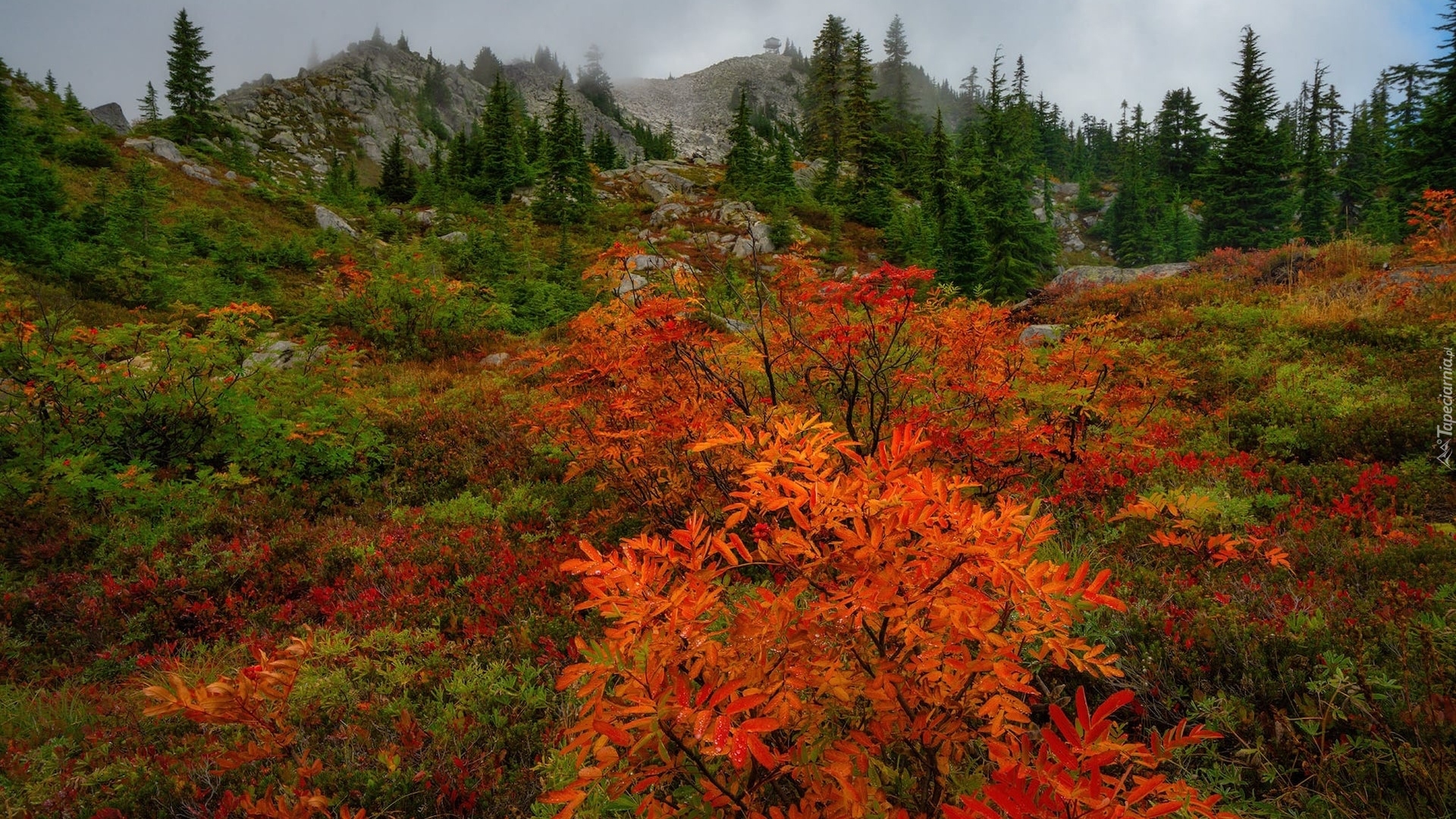 Edytor tapety: Kolorowe krzewy jesienią