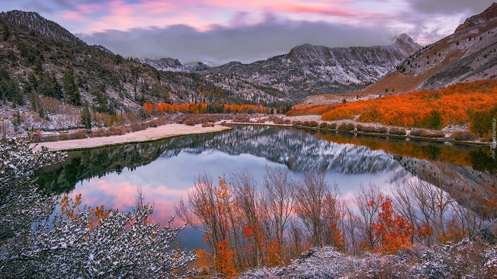 Edytor tapety: Pierwszy śnieg nad jeziorem North Lake w Kalifornii
