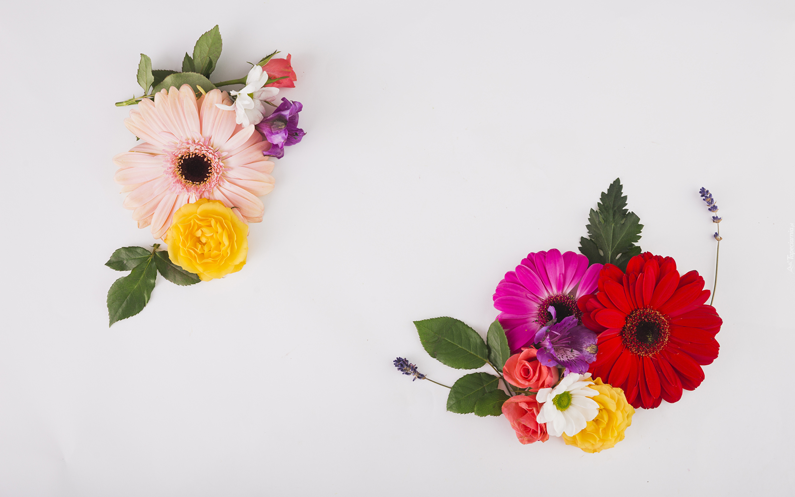 Edytor tapety: Róże i gerbery na jasnym tle