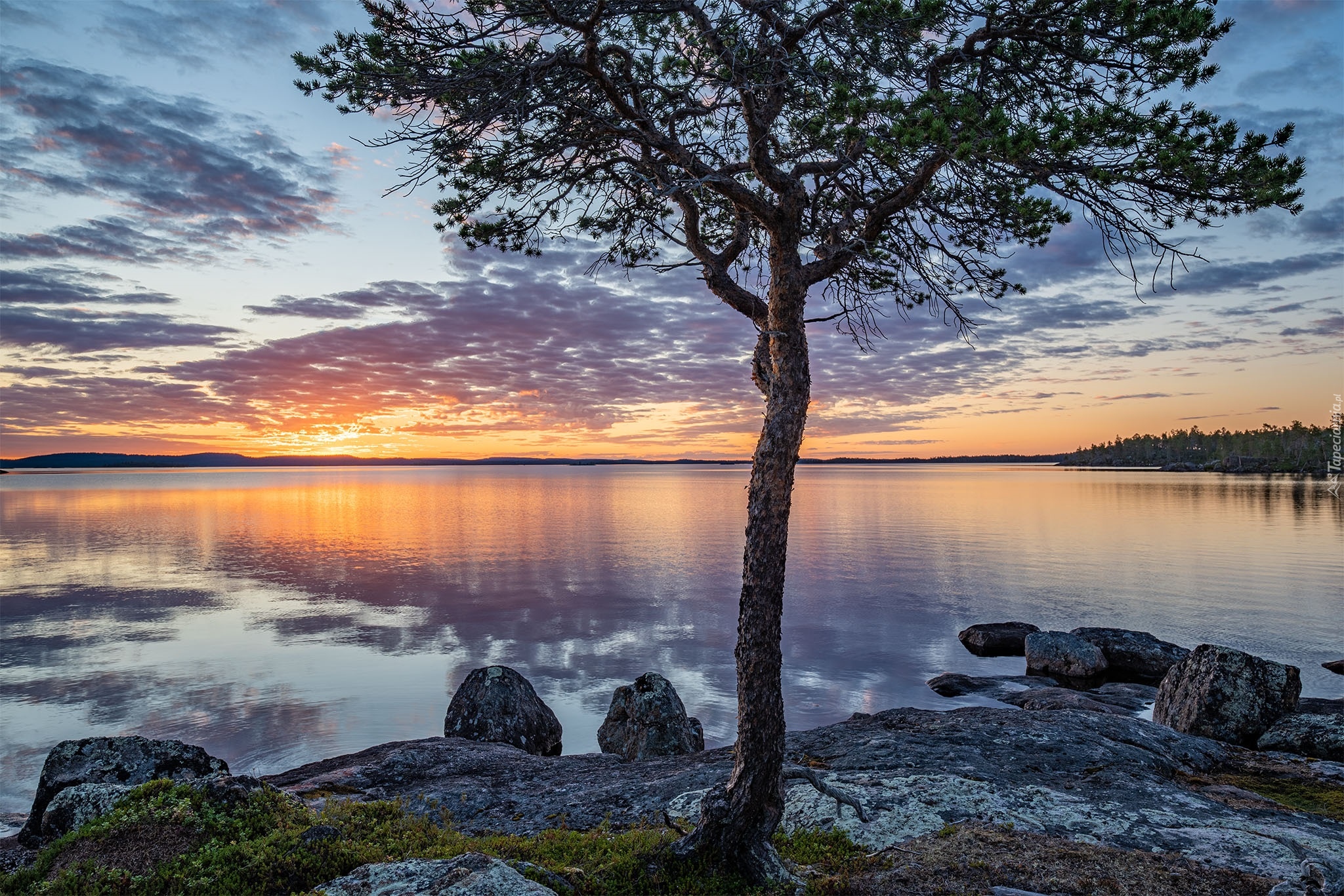 Edytor tapety: Drzewo na tle jeziora Lake Inari w Finlandii