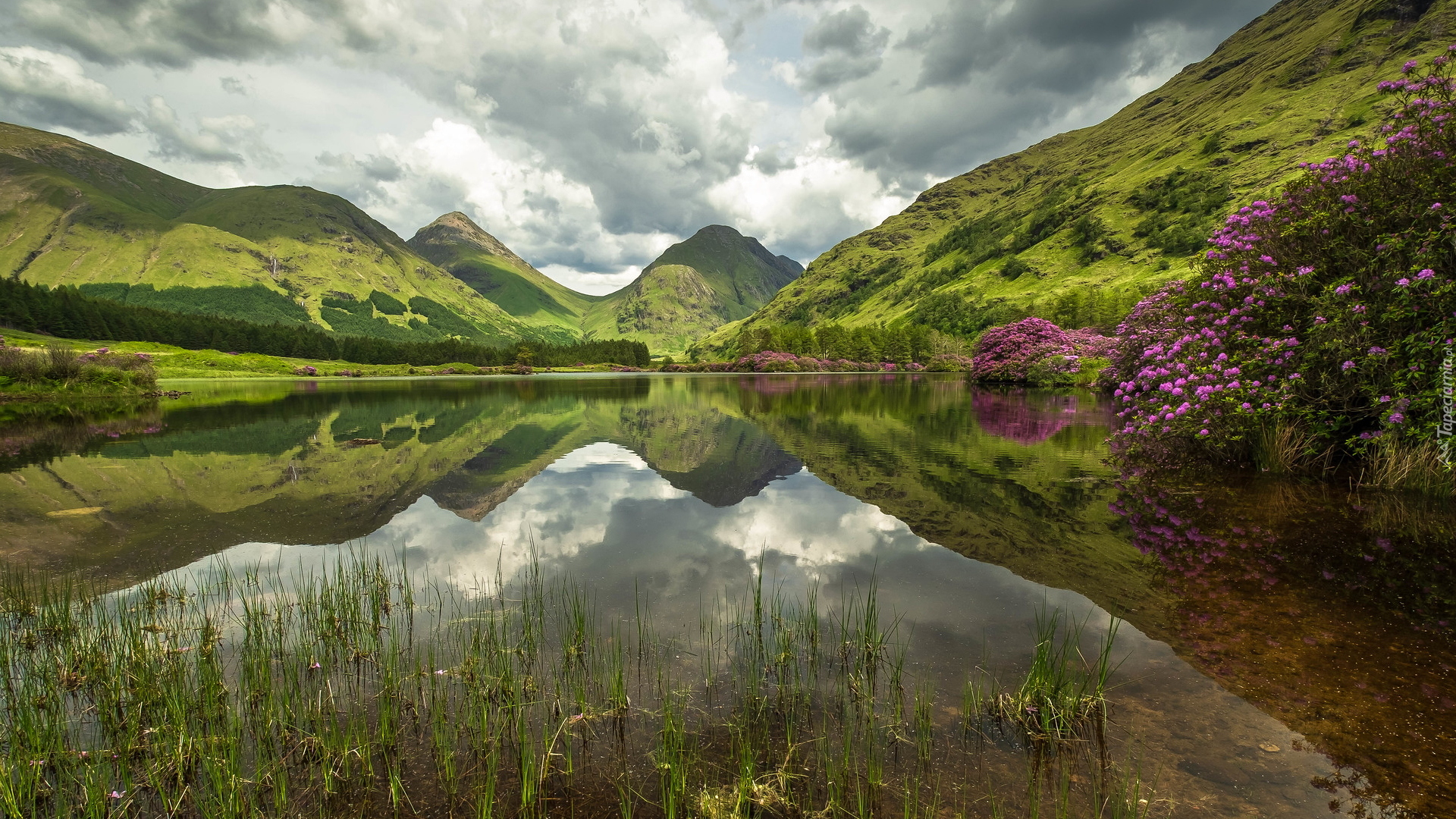Edytor tapety: Różaneczniki nad jeziorem Lochan Urr w Szkocji