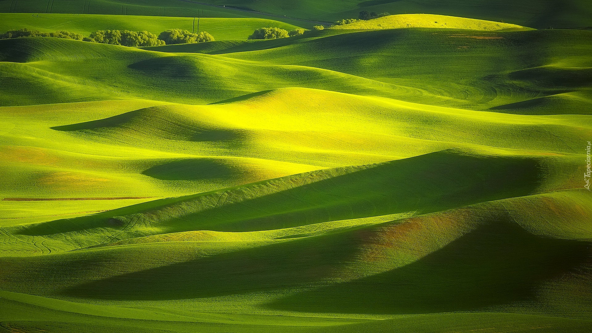 Edytor tapety: Rozświetlone zielone wzgórza Palouse w Stanach Zjednoczonych