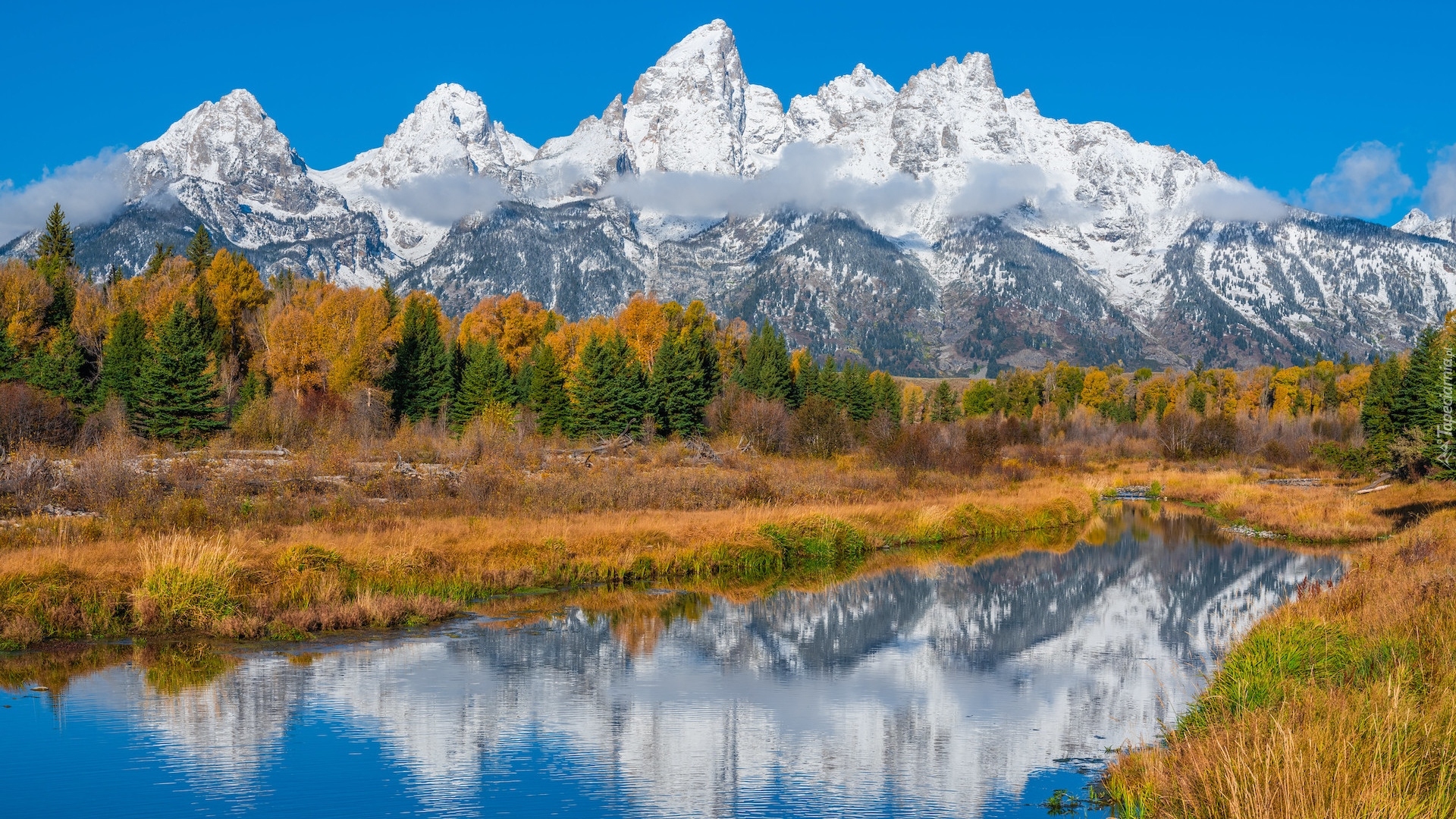 Edytor tapety: Jesienna roślinność na tle ośnieżonych gór Teton Range