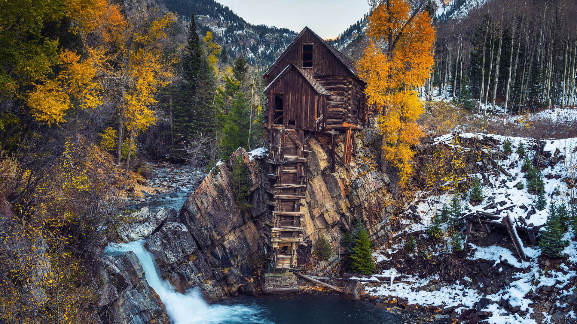 Edytor tapety: Drewniany młyn Crystal Mill w Kolorado