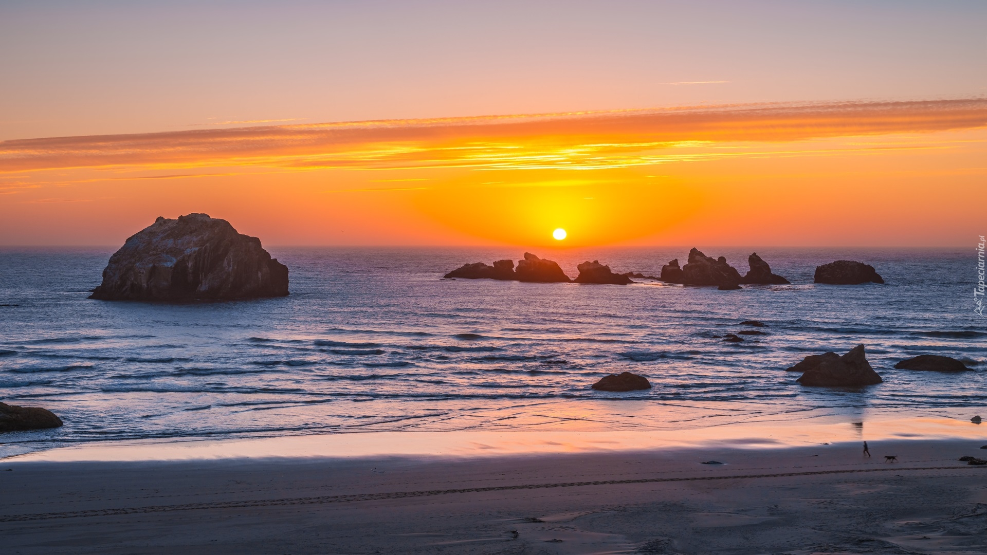 Edytor tapety: Skały w morzu na tle zachodu słońca