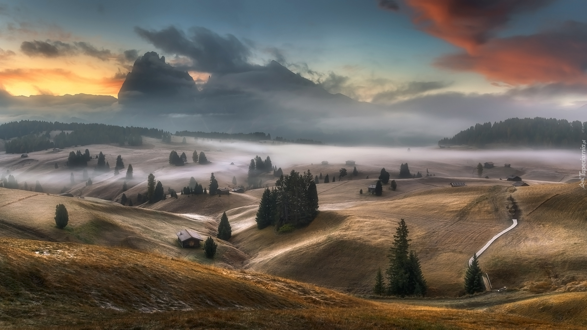 Edytor tapety: Dolina Val Gardena z widokiem na góry Sassolungo