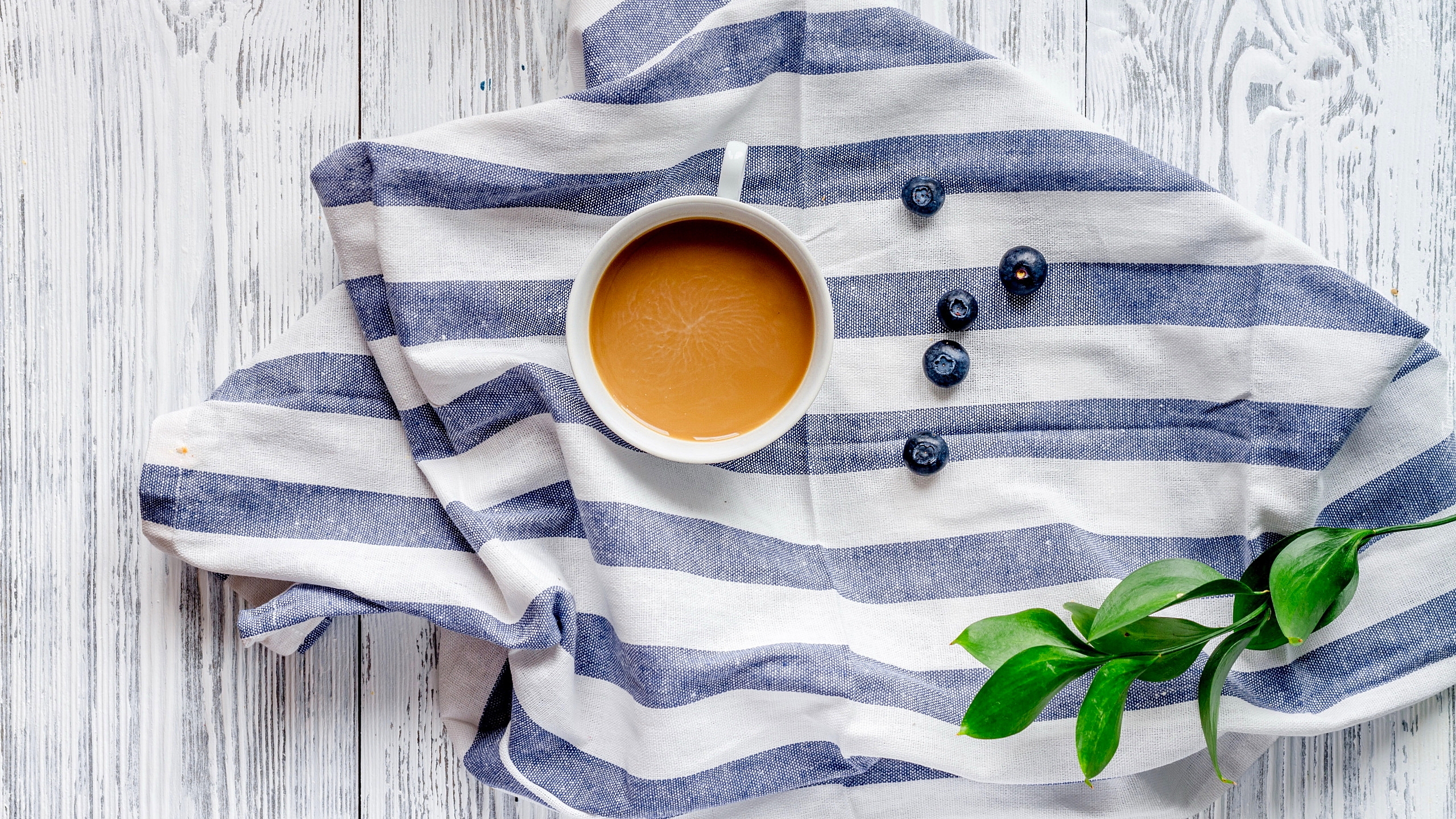 Edytor tapety: Filiżanka kawy i jagody na materiale
