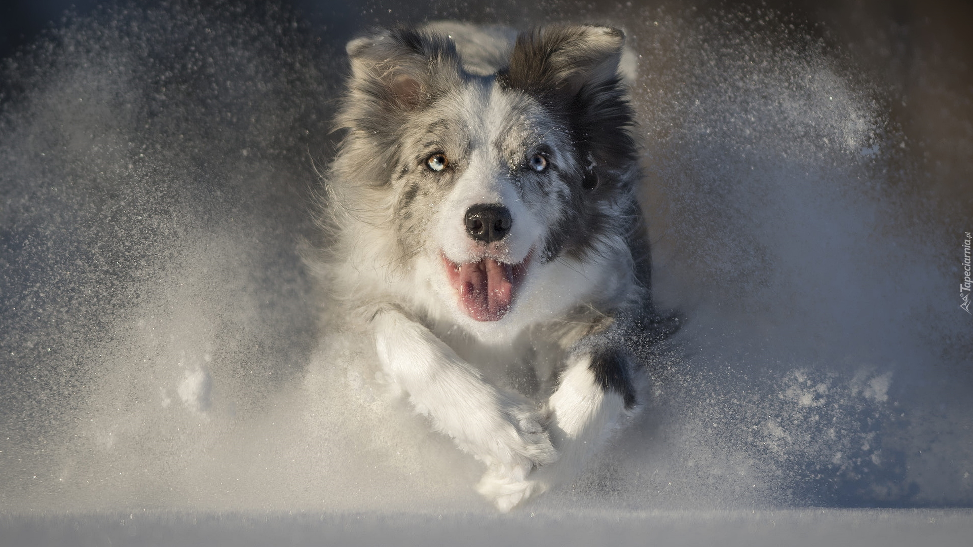 Edytor tapety: Biegnący border collie po śniegu