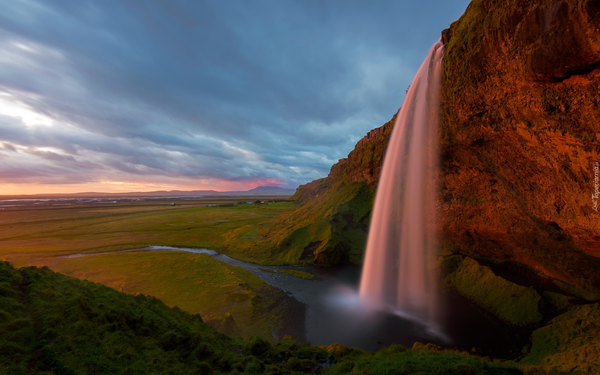 Edytor tapety: Wodospad Seljalandsfoss i łąki w Islandii