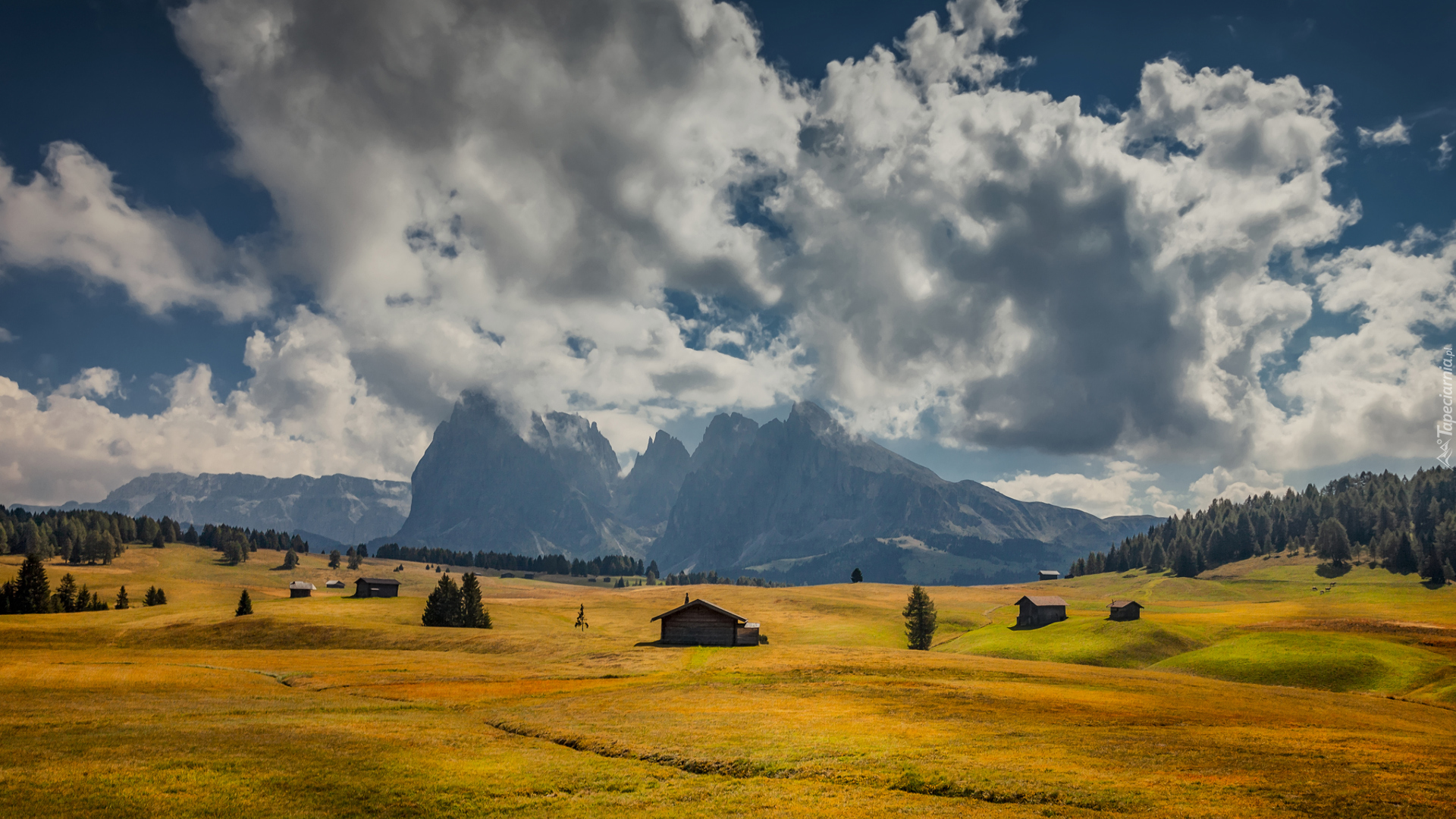 Edytor tapety: Płaskowyż Seiser Alm i góry Sassolungo we Włoszech