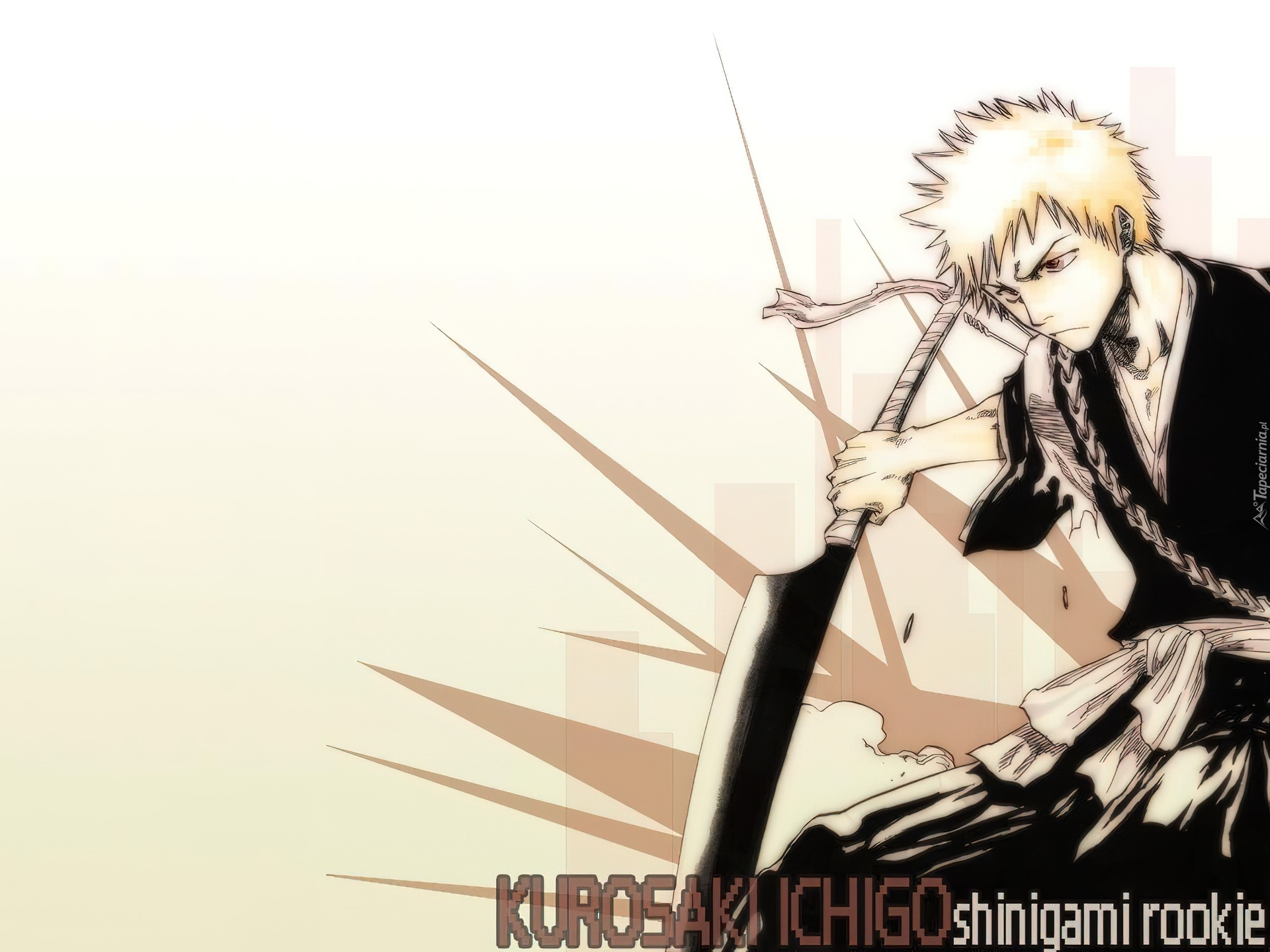Edytor tapety: Bleach, napis, postać, miecz