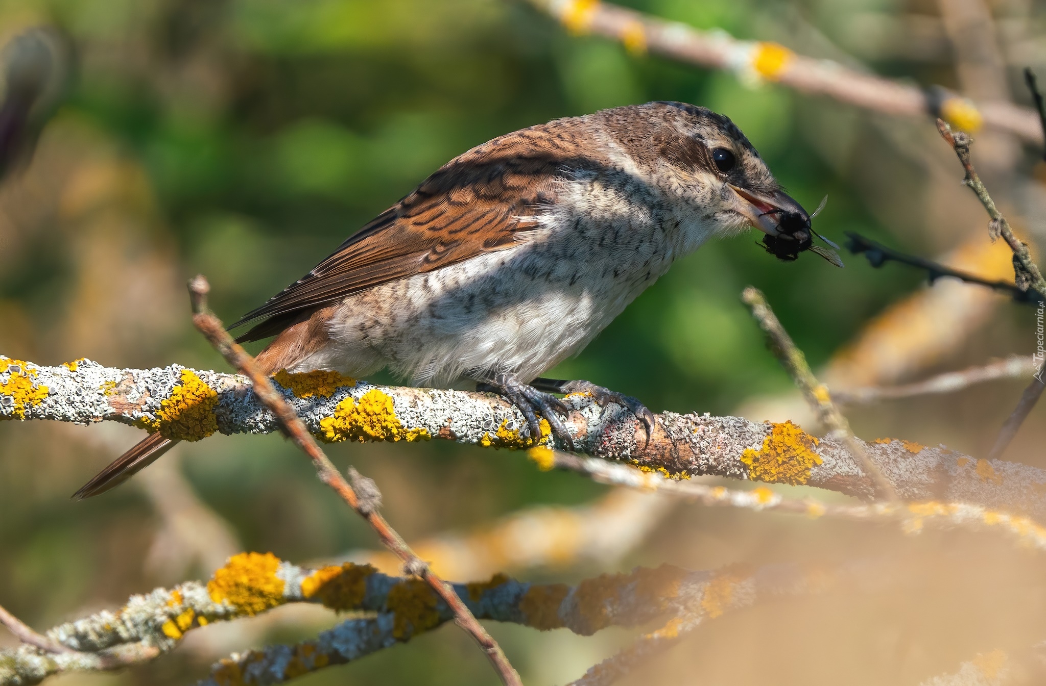 Edytor tapety: Młody gąsiorek z owadem w dzióbku