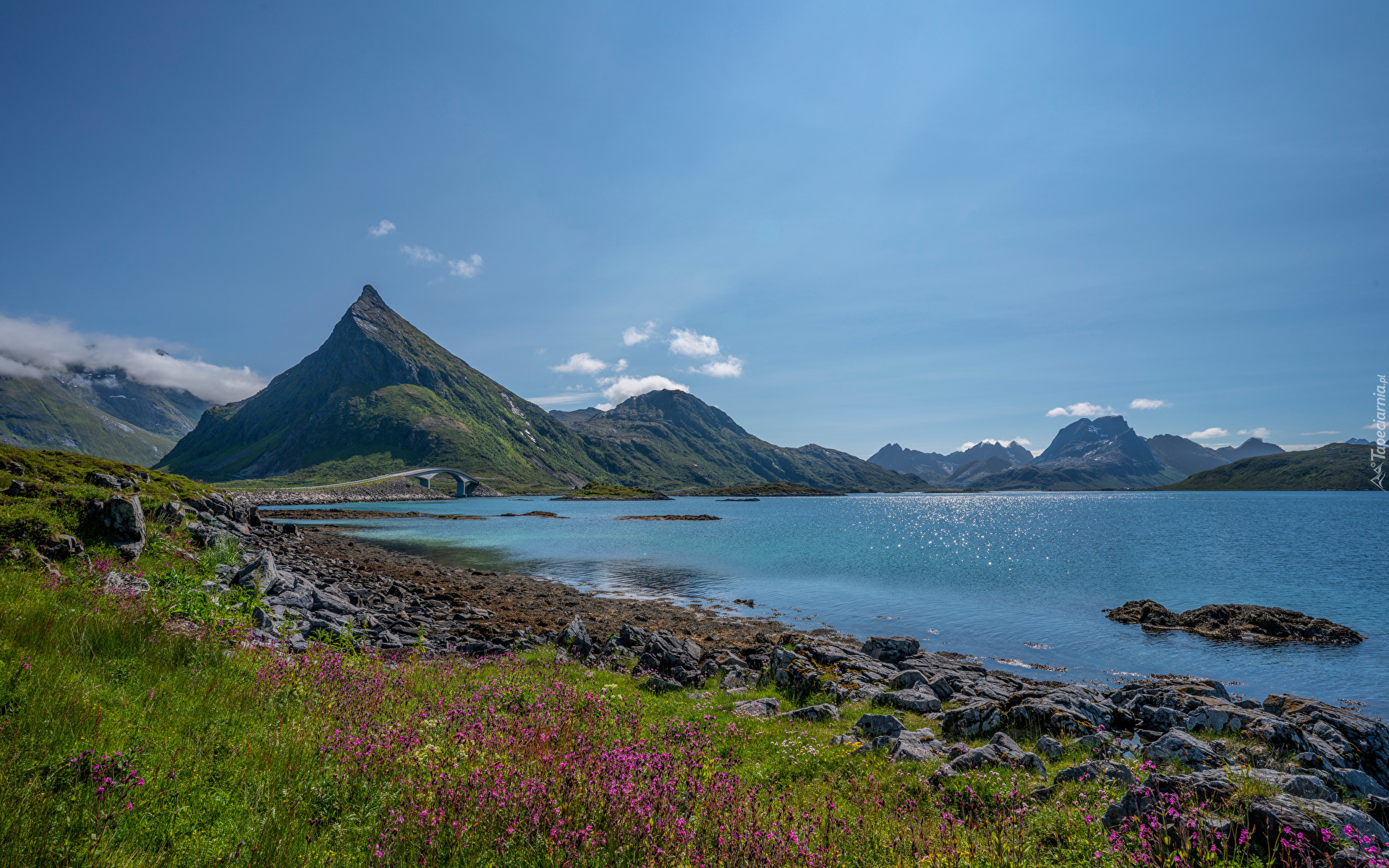Edytor tapety: Kamienie nad brzegiem górskiego jeziora