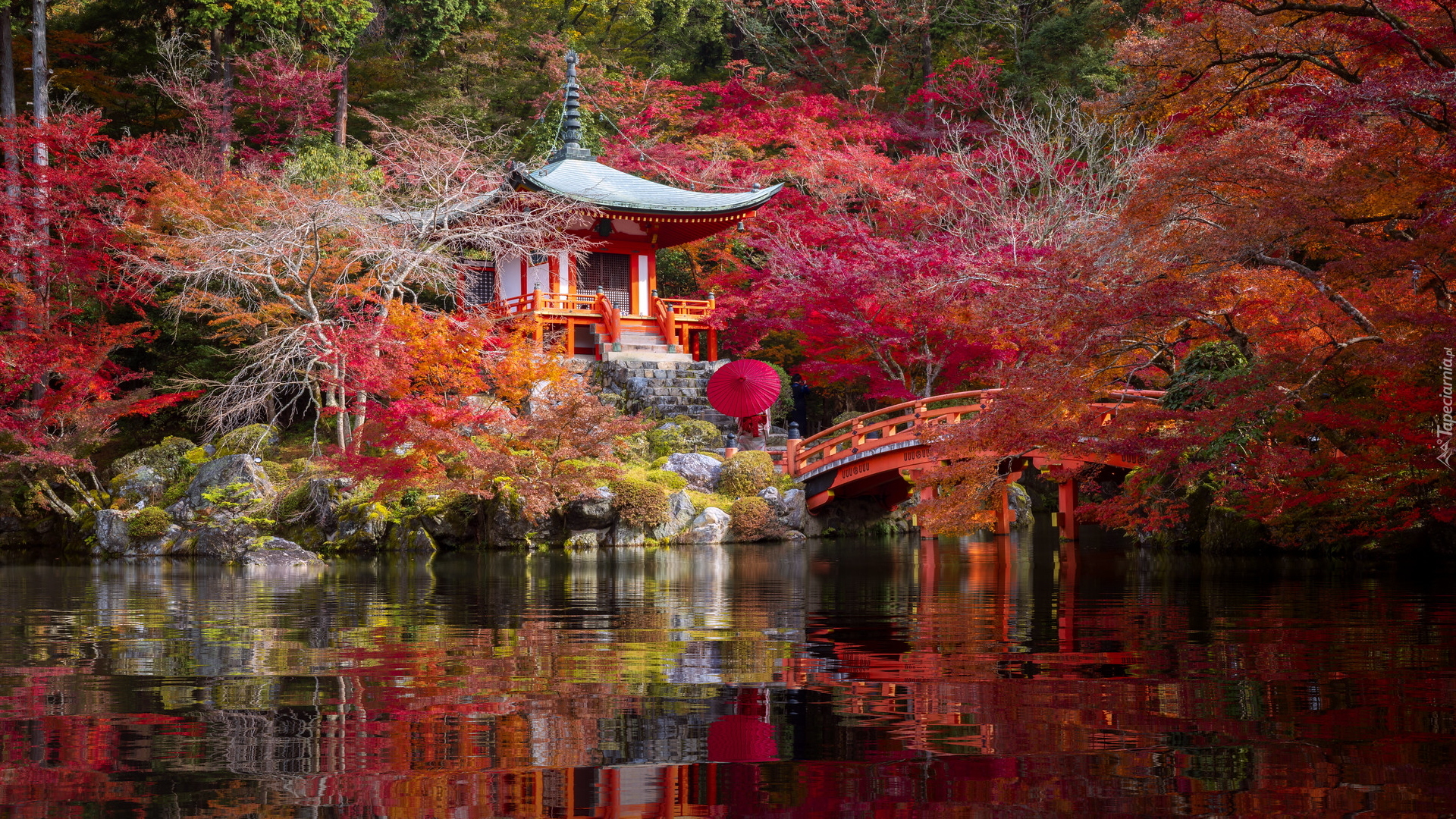 Edytor tapety: Świątynia Benten-do w Kioto pośród jesiennych drzew