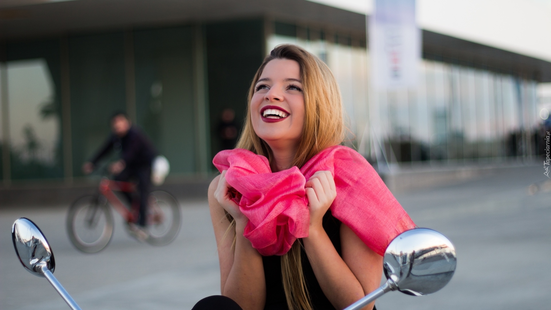 Edytor tapety: Uśmiechnięta dziewczyna z różowym szalem