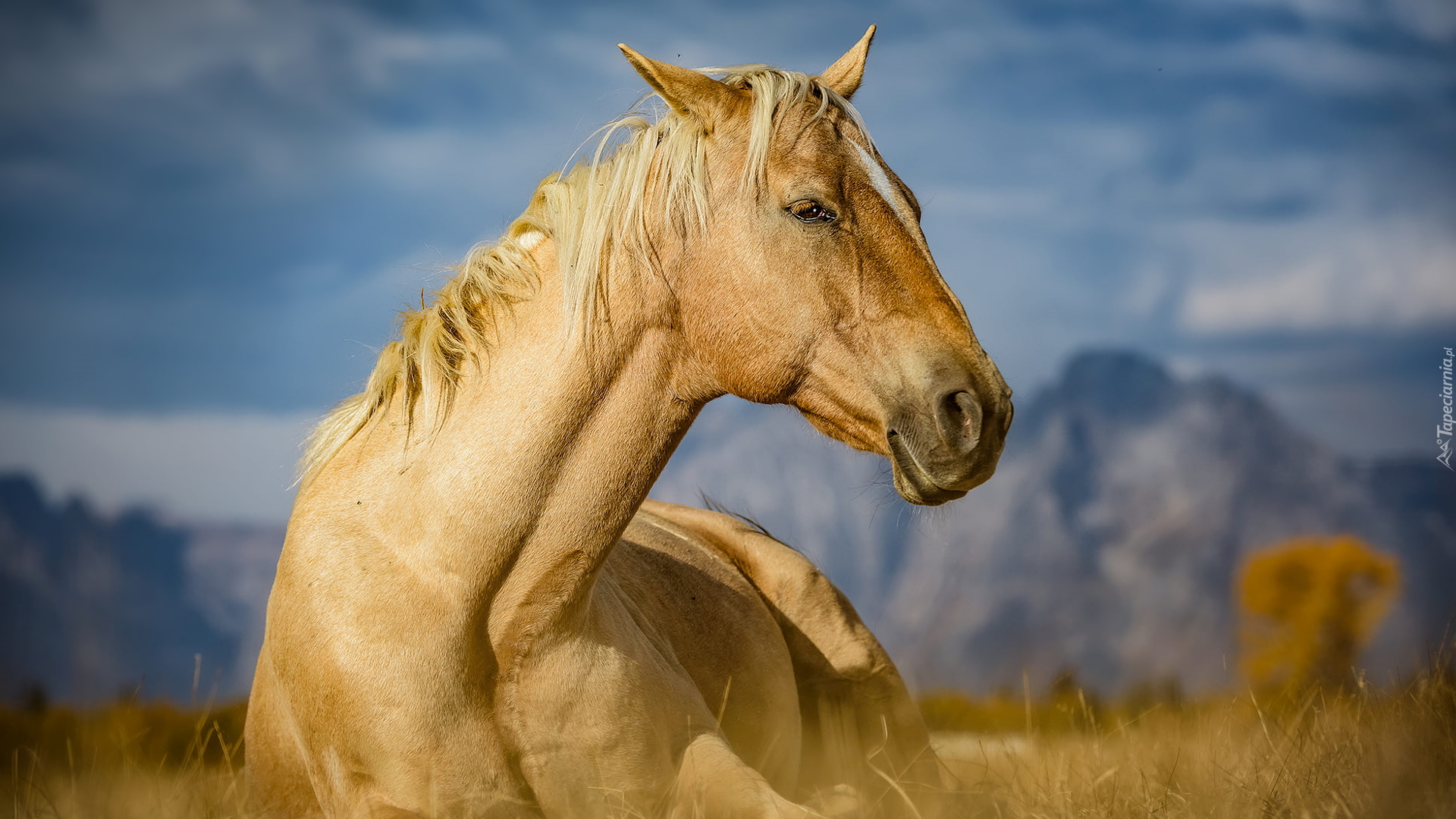 Edytor tapety: Koń na tle gór