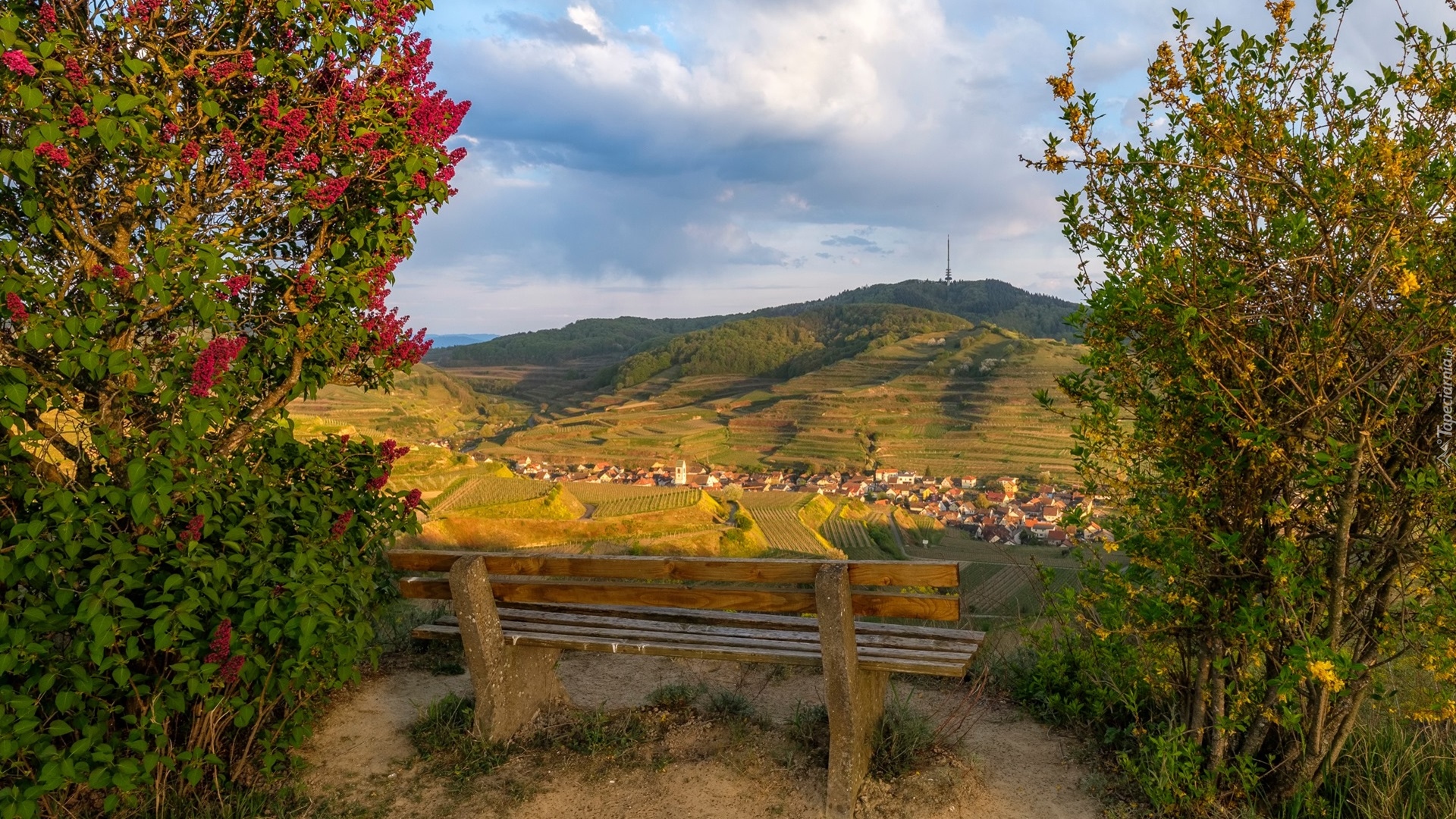 Edytor tapety: Widok z ławki na miasteczko Vogtsburg