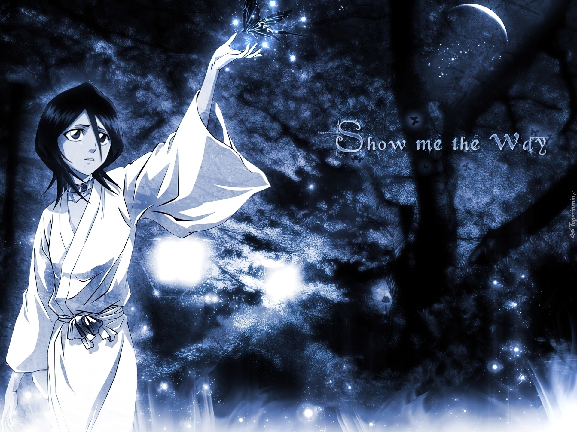 Edytor tapety: Bleach, kobieta, napisy, noc