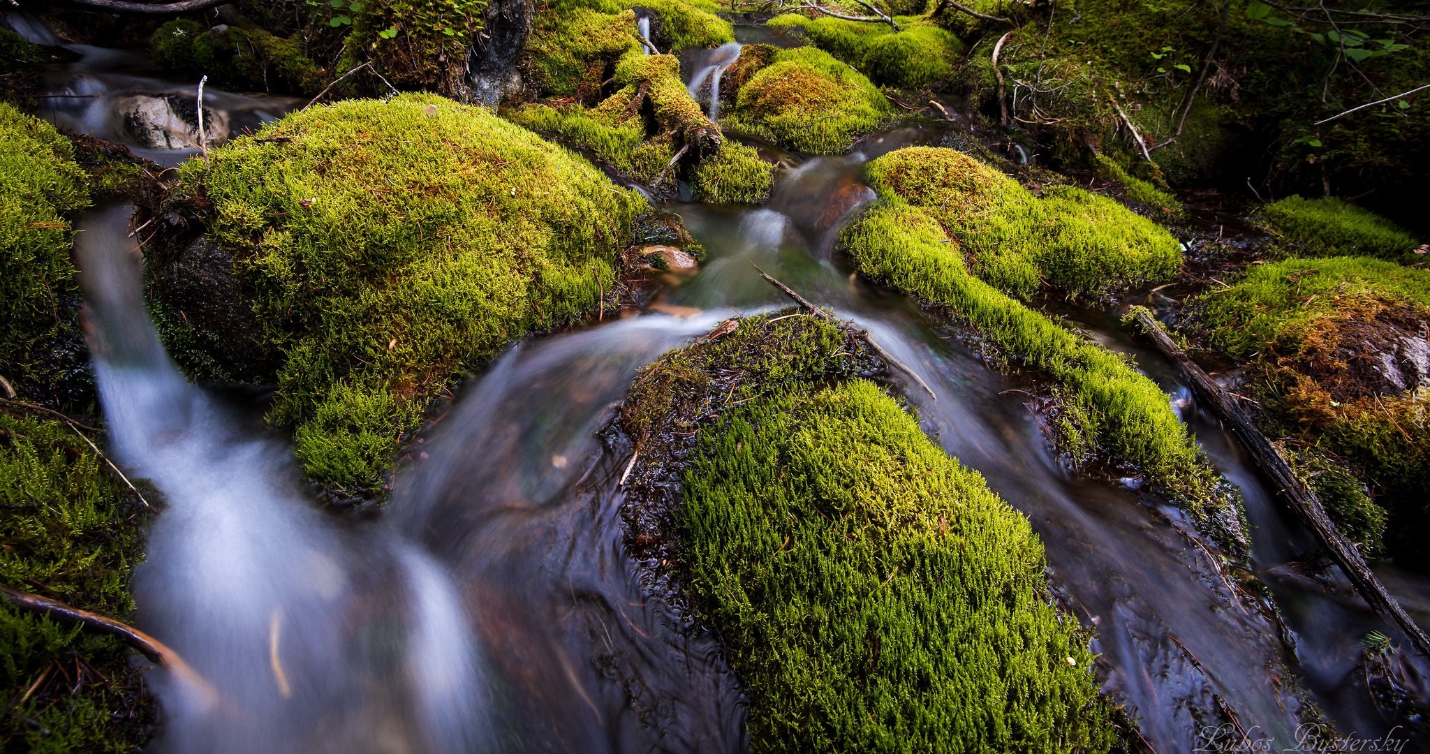 Edytor tapety: Potok płynący między omszałymi kamieniami