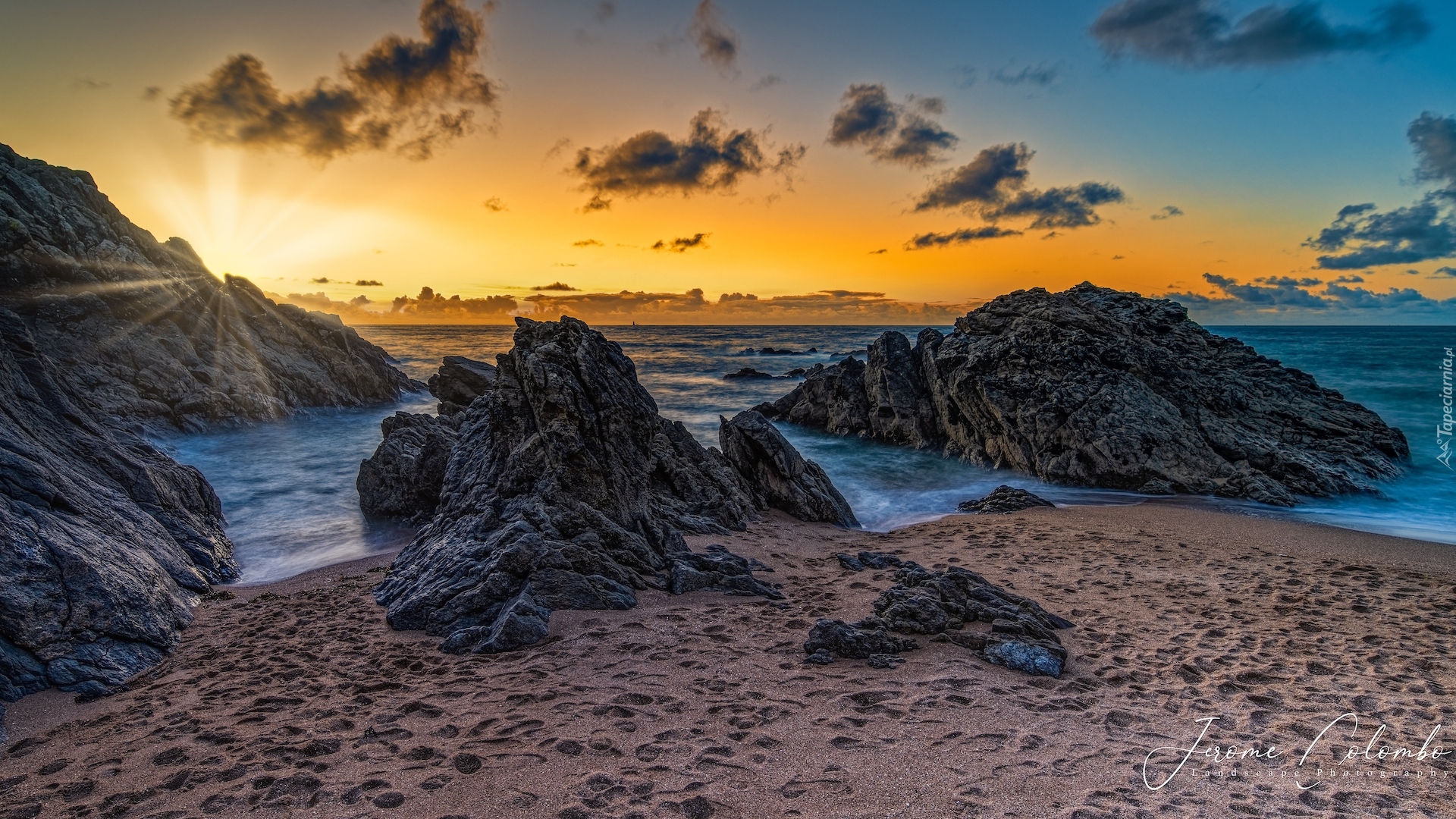 Edytor tapety: Skały na plaży u wybrzeży Bretanii we Francji