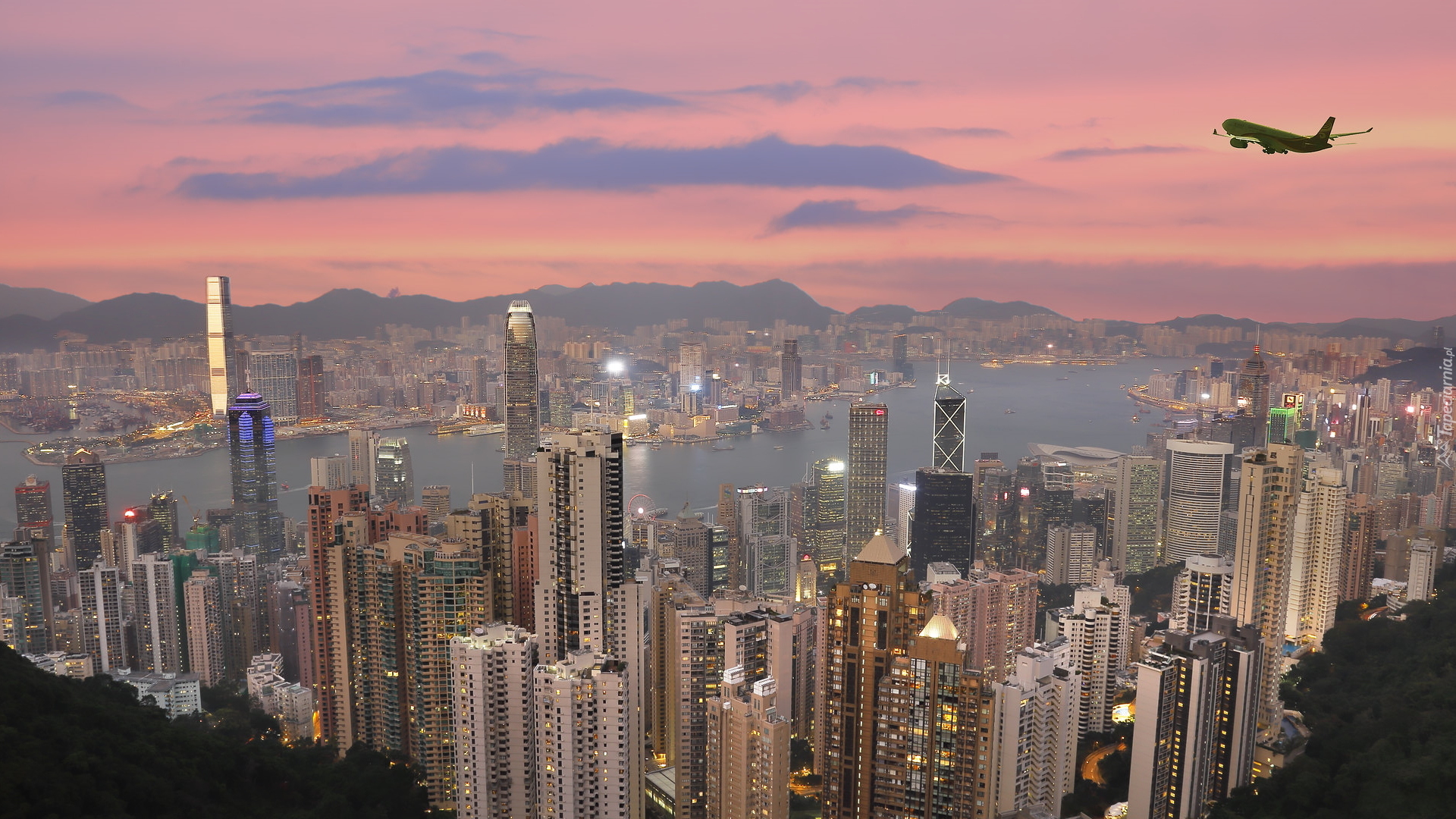 Edytor tapety: Samolot nad Hongkongiem