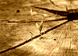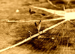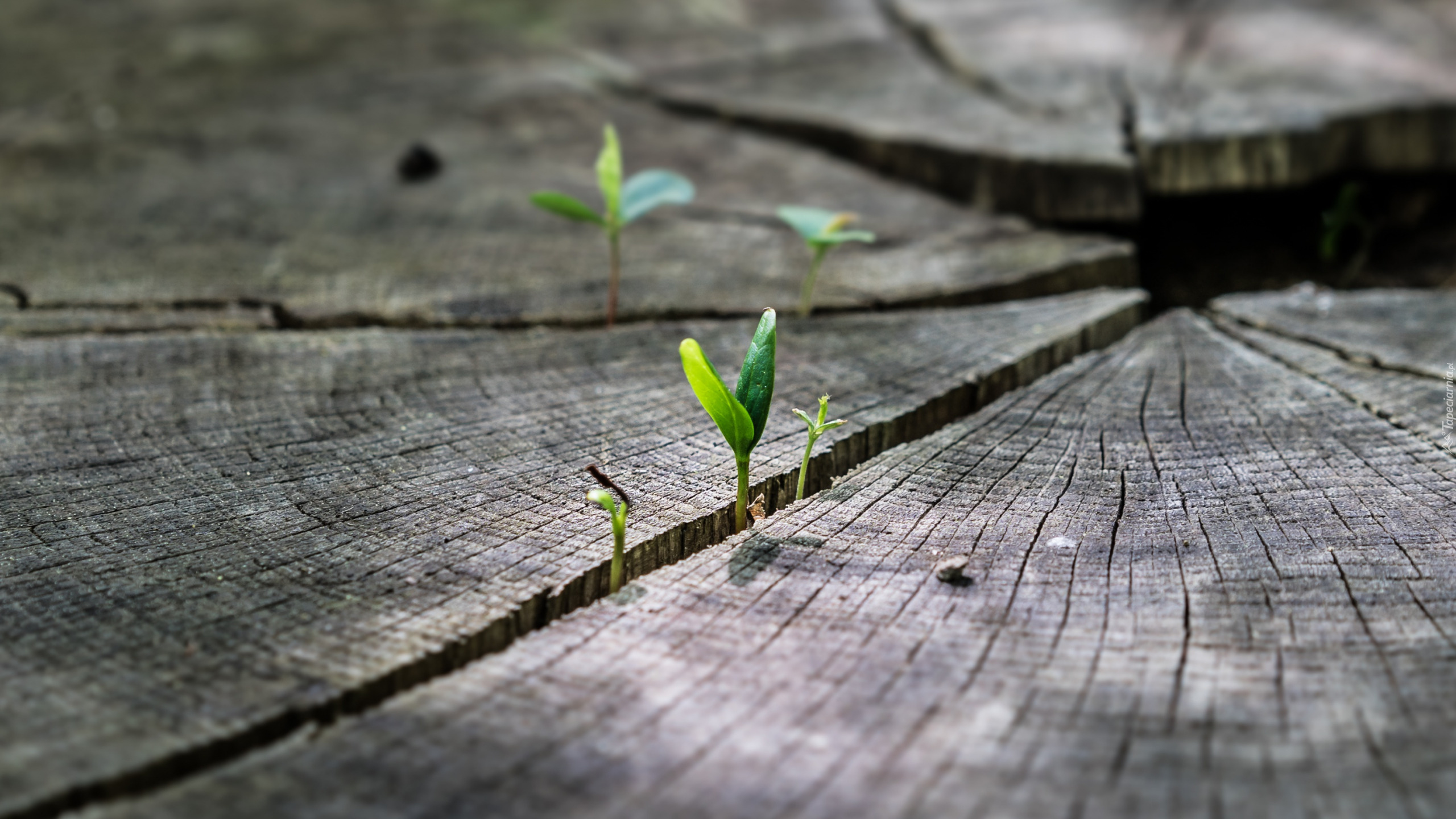 Edytor tapety: Młode listki na pniu ściętego drzewa