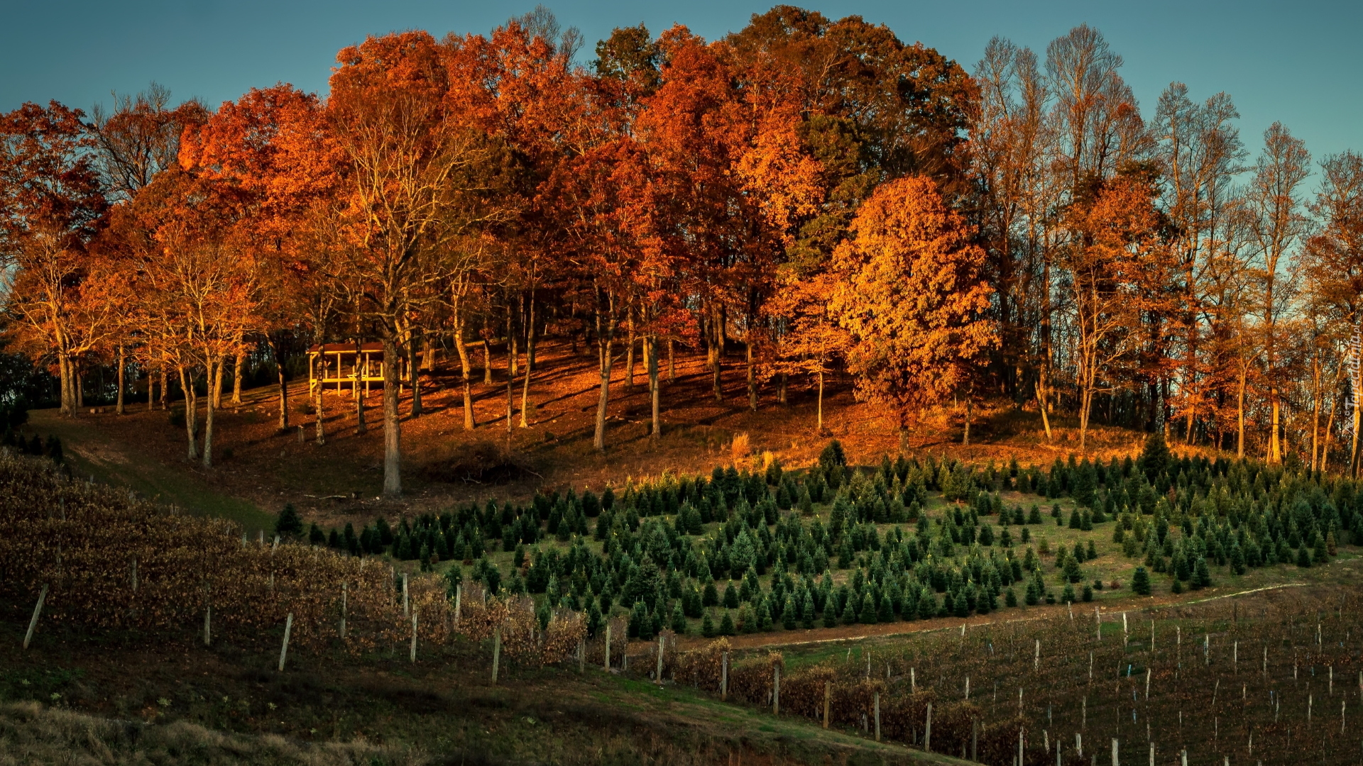 Edytor tapety: Szkółka leśna na tle jesiennych drzew