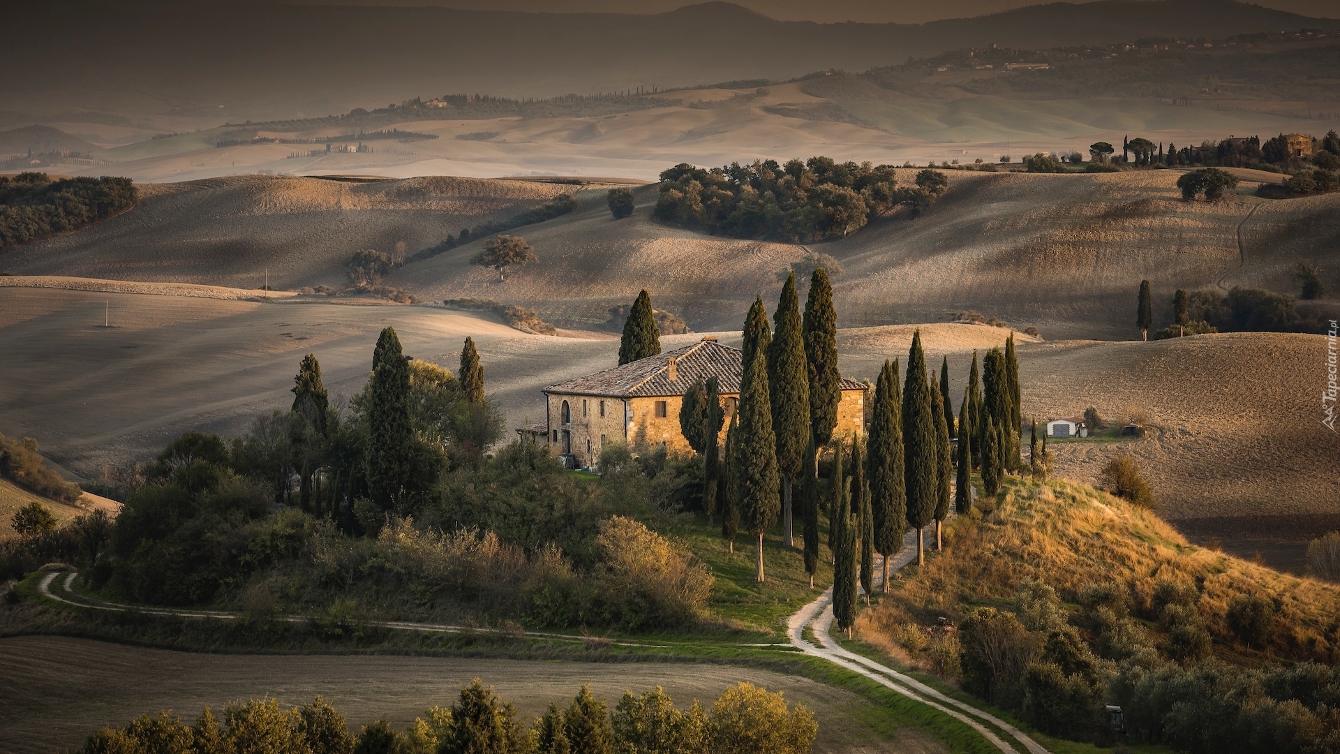 Edytor tapety: Dom pośród cyprysów na toskańskich wzgórzach