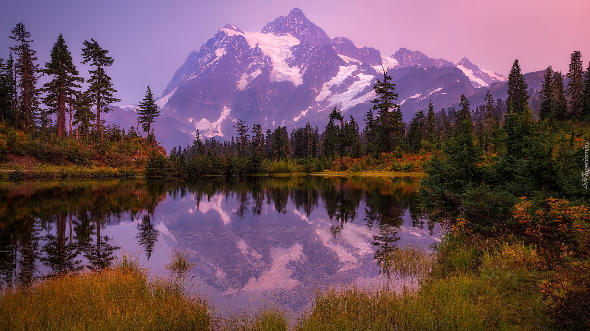 Edytor tapety: Odbicie góry Mount Shuksan w jeziorze Picture Lake