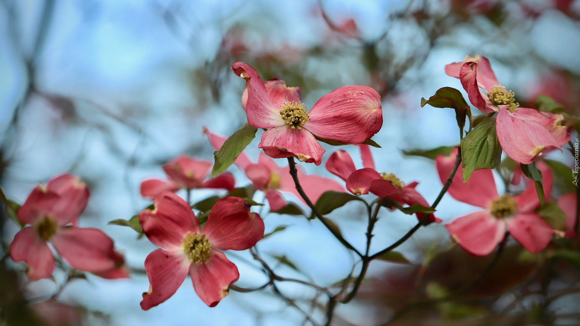 Edytor tapety: Czerwony dereń z listkami na gałązkach