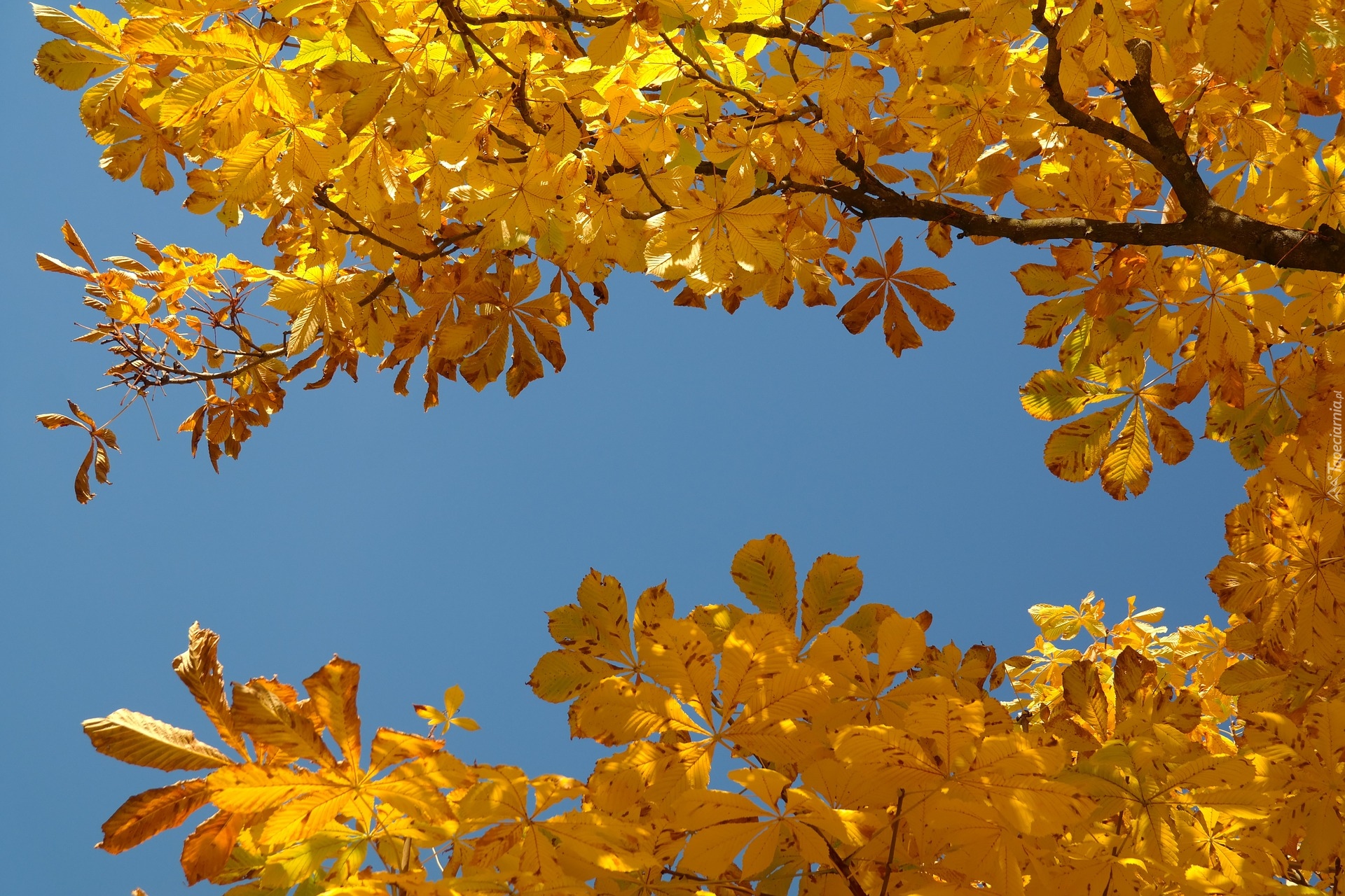 Edytor tapety: Pożółkłe liście kasztanowca na tle błękitnego nieba