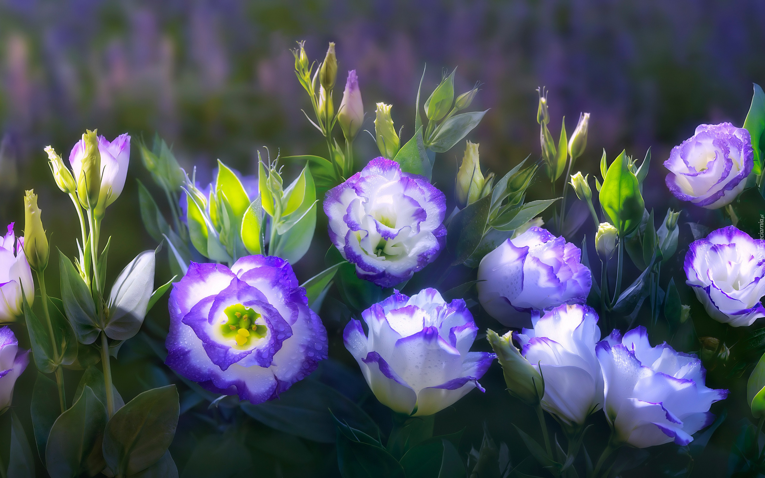 Edytor tapety: Biało-fioletowe eustomy z pąkami
