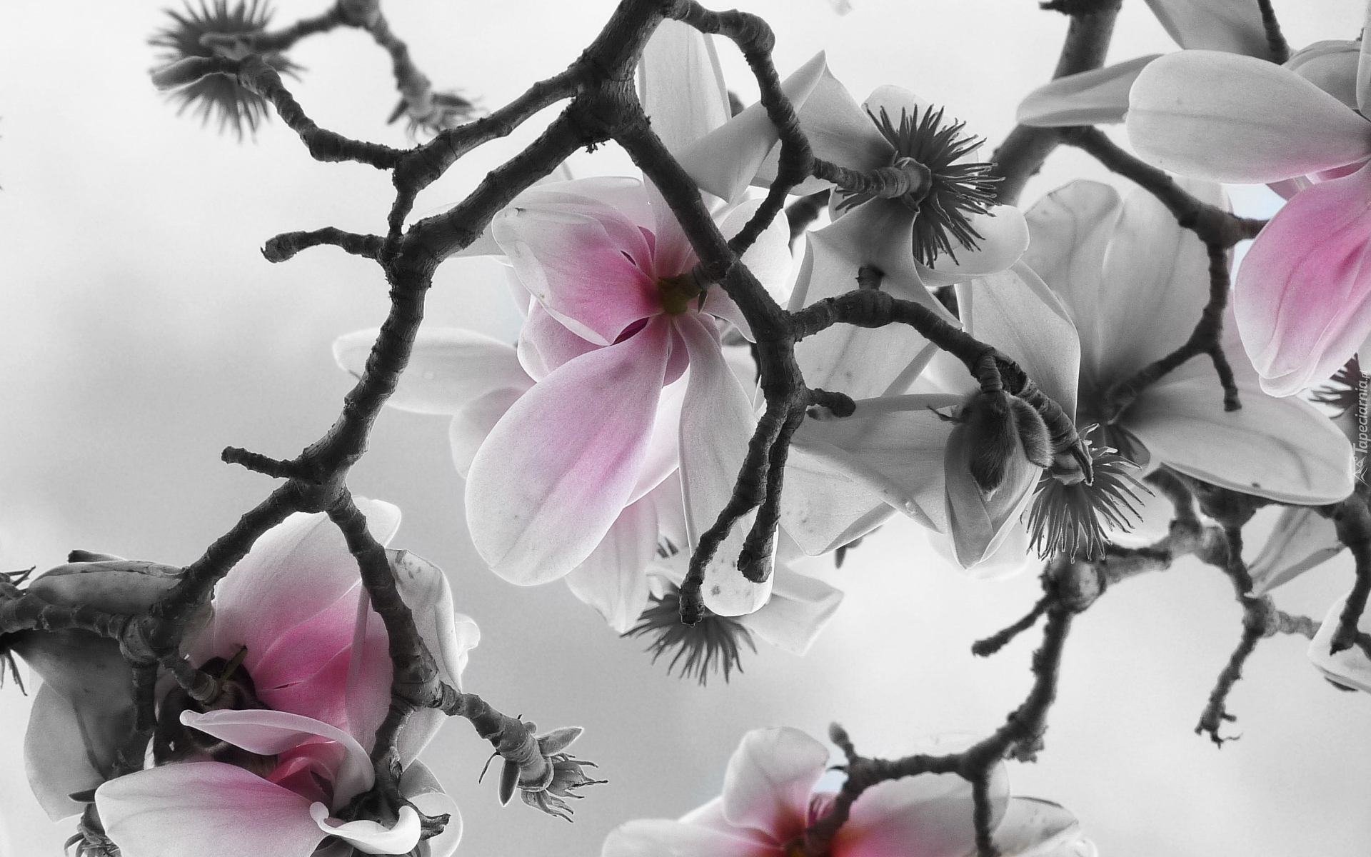 Edytor tapety: Bladoróżowe magnolie na gałązkach