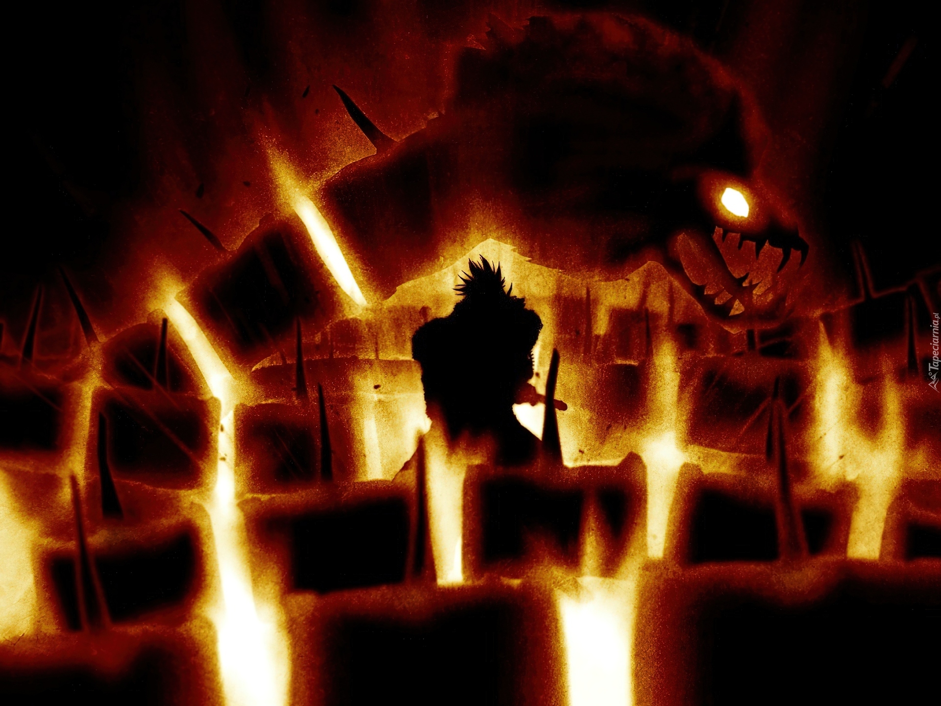 Edytor tapety: Bleach, postać, stwór, ogień, katakumby