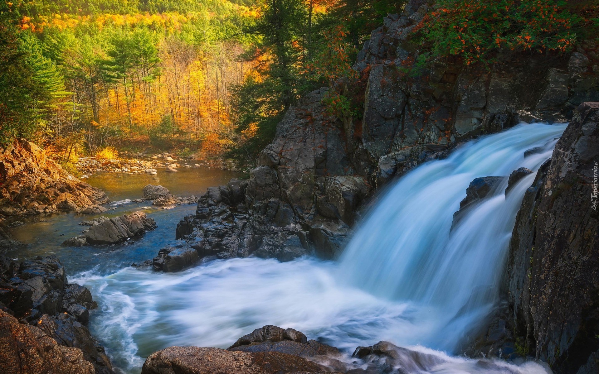 Edytor tapety: Wodospad na skale jesienną porą