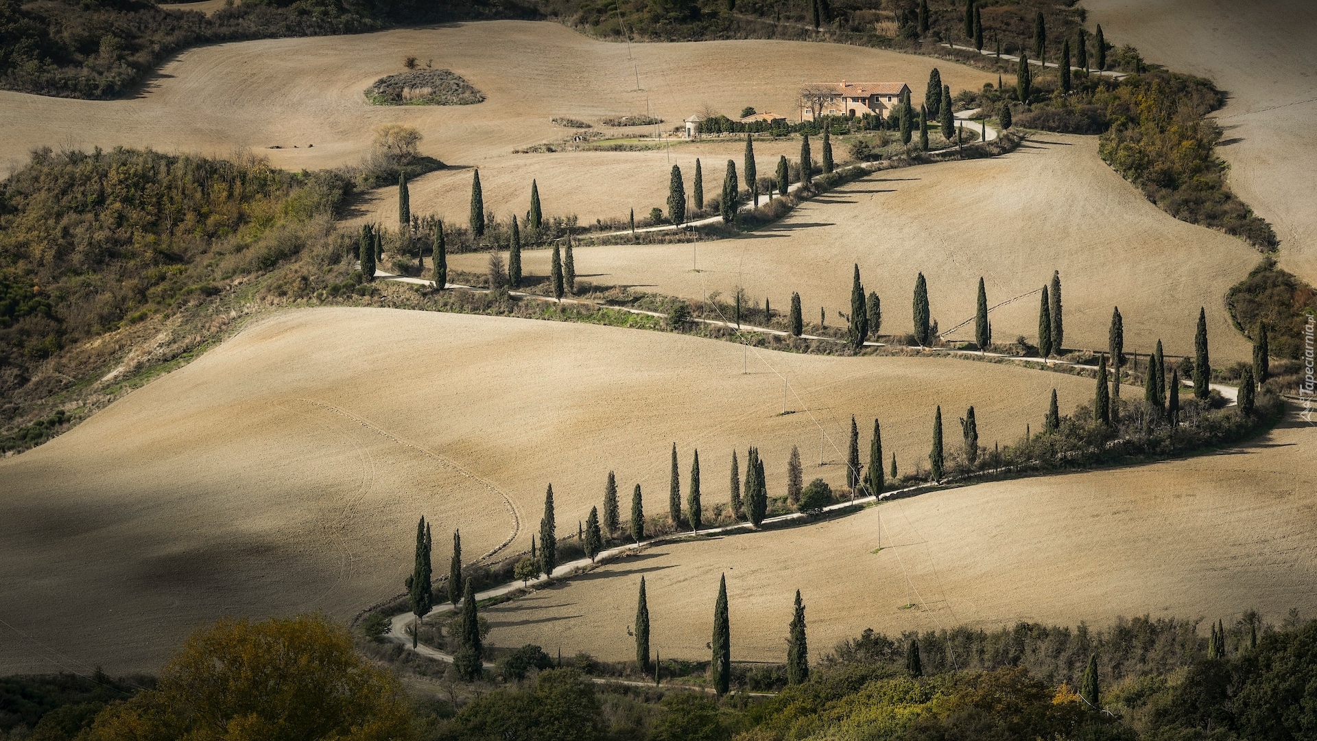 Edytor tapety: Kręta droga wśród wzgórz Toskanii