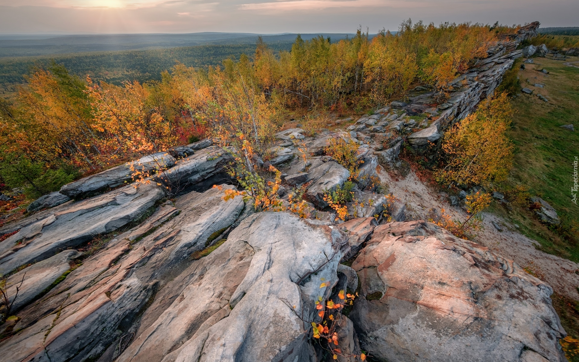 Edytor tapety: Jesienna roślinność na skałach