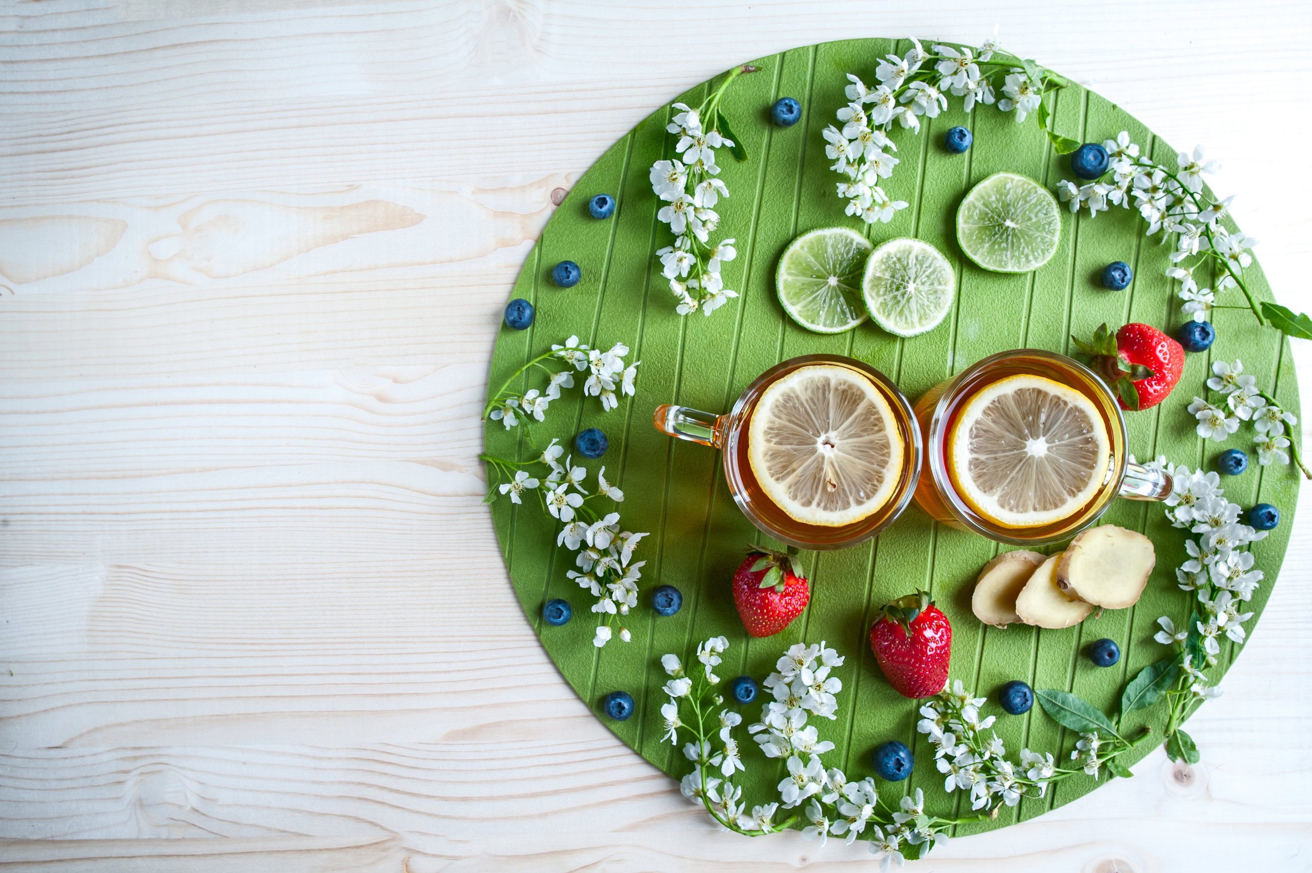 Edytor tapety: Kubki z herbatą na zielonej podkładce