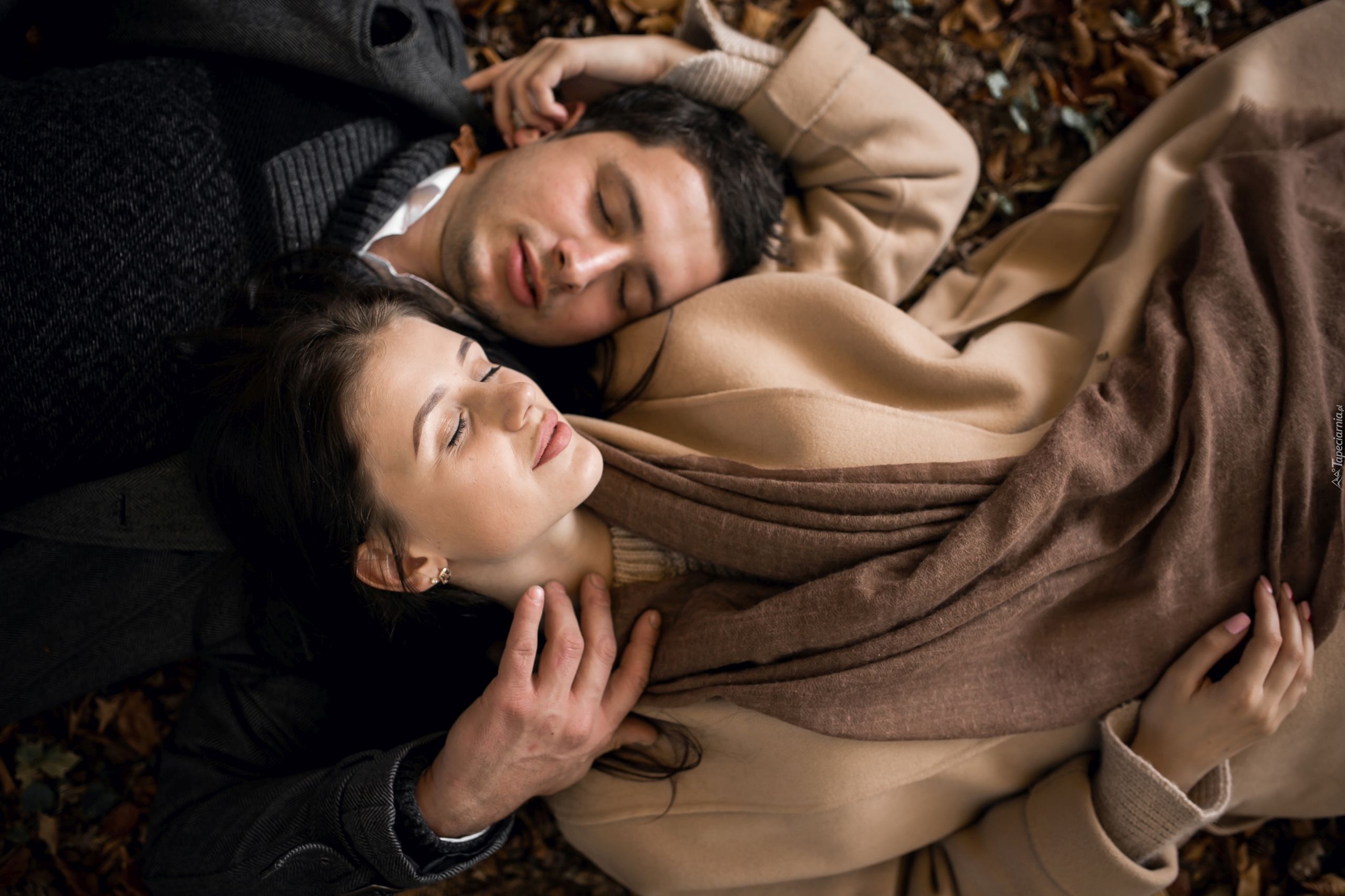 Edytor tapety: Kobieta i mężczyzna leżący na liściach
