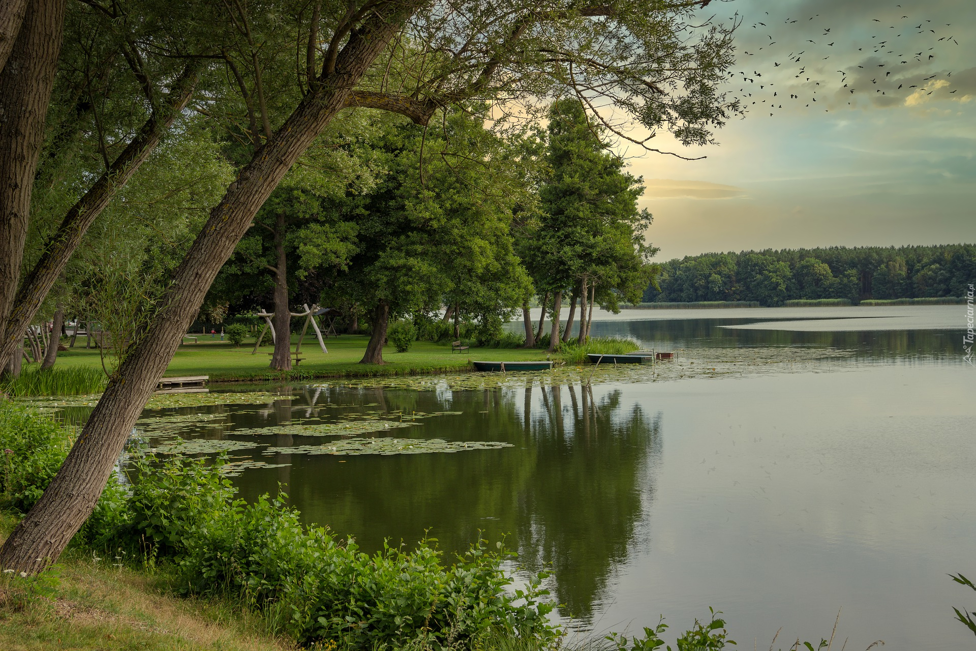 Edytor tapety: Drzewa na brzegu jeziora Lychensee w Niemczech