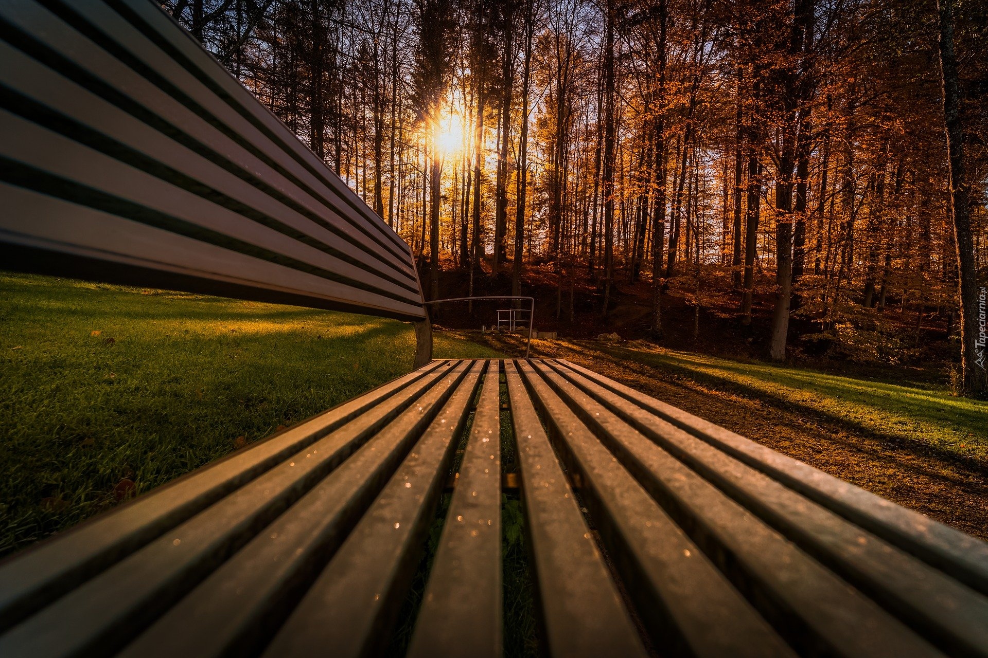 Edytor tapety: Widok z ławki na drzewa