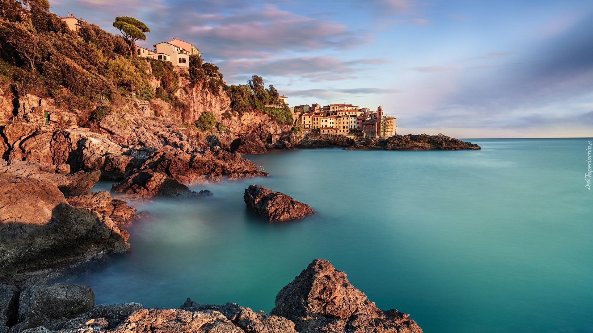Edytor tapety: Widok ze skał na domy w Tellaro