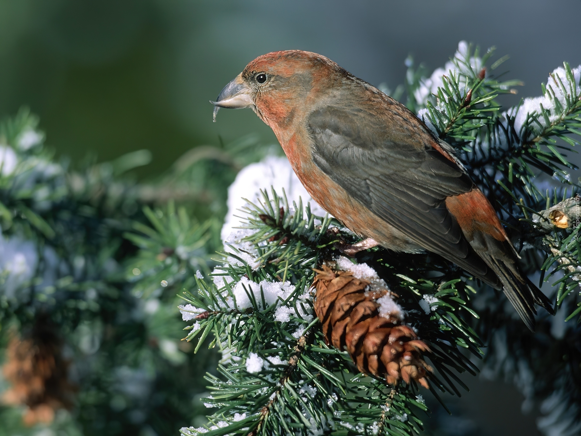 Edytor tapety: Ptak, krzyżodziób, szyszka, drzewo