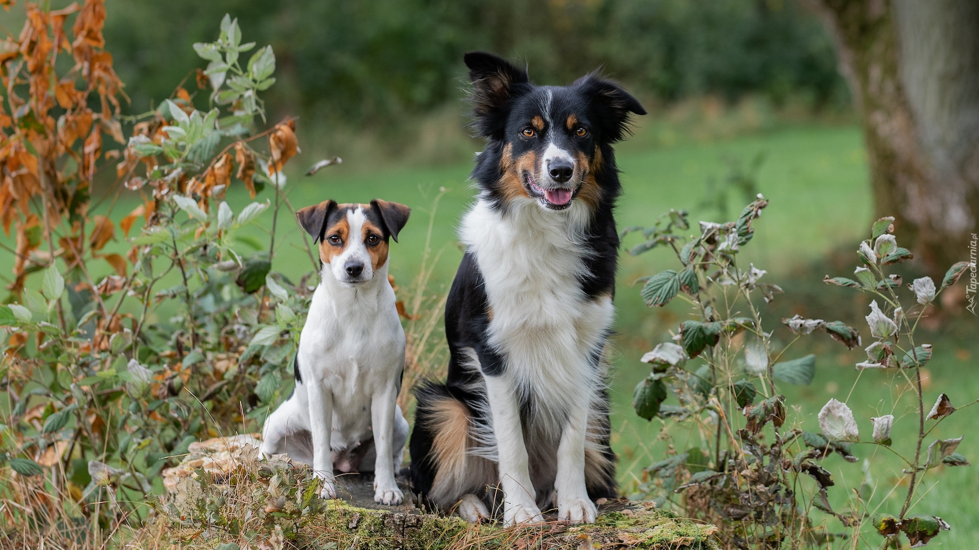 Edytor tapety: Border collie obok biało-brązowego psa