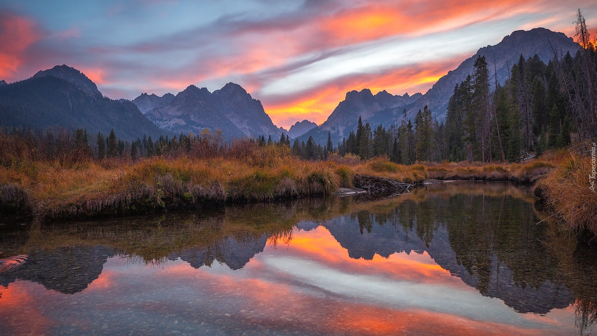 Edytor tapety: Widok znad jeziora na góry Sawtooth Range
