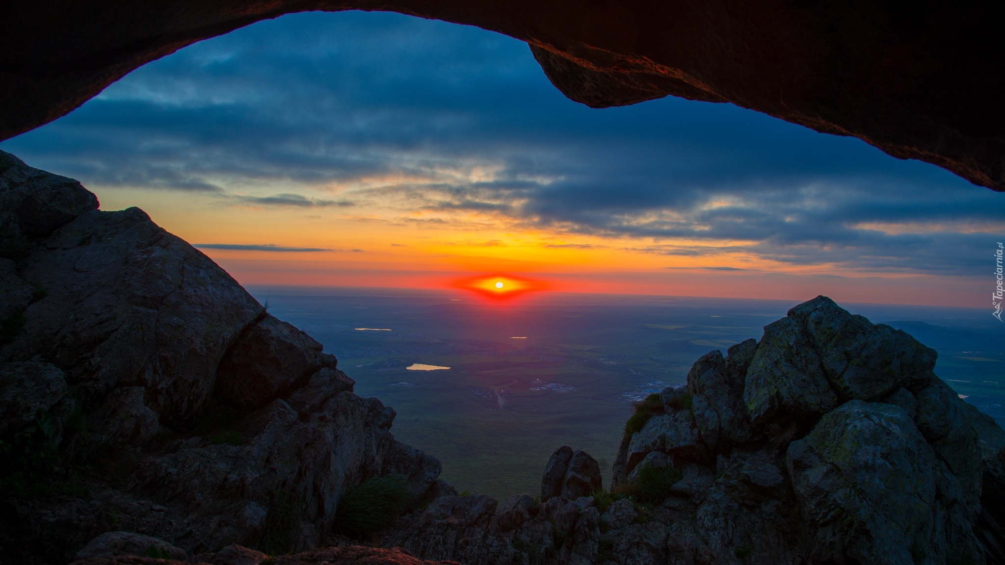 Edytor tapety: Widok z jaskini na wschód słońca